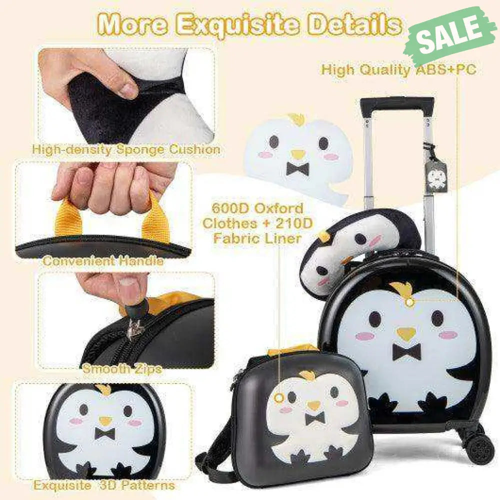 ‚óè Complete Travel Set for Kids: This 4-piece kid's luggage set includes a 14" carry-on rolling luggage a 10" backpack a comfortable neck pillow and a cute luggage tag which is perfect for both family vacation and school trip. And it is airline-approved carry-on.