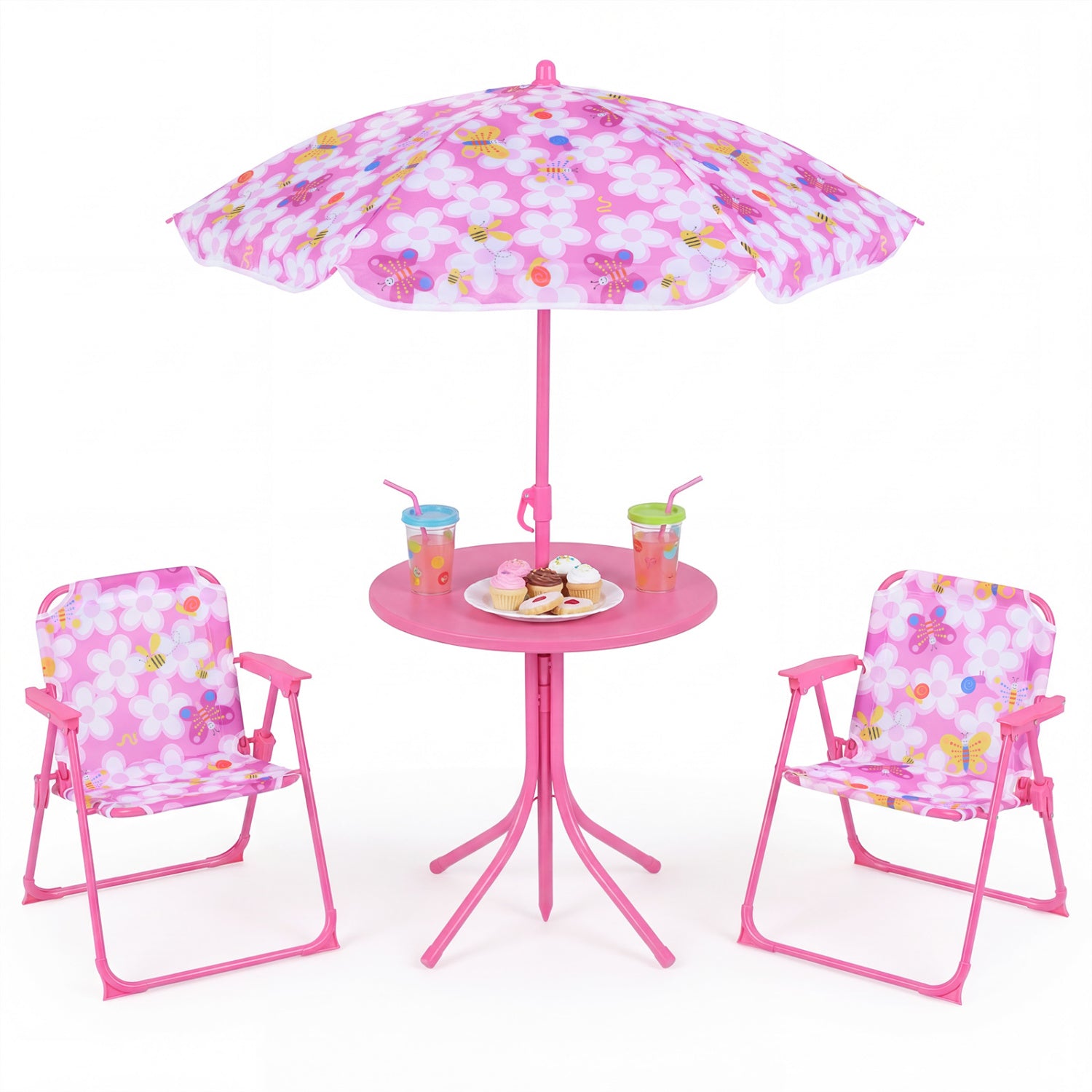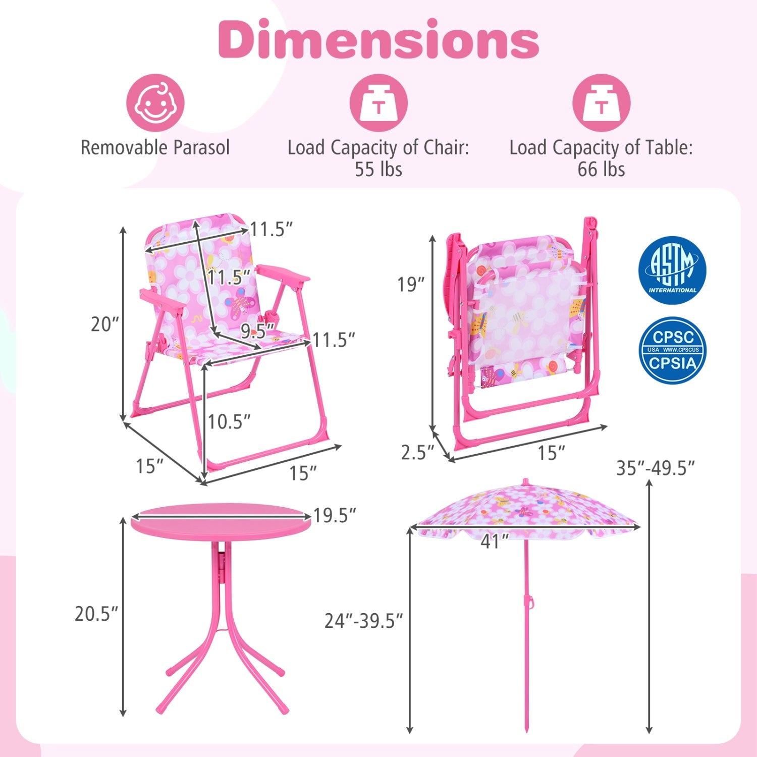 - Kids Outdoor Table and Chair Set with 2 Folding Chairs and Height Adjustable Umbrella
