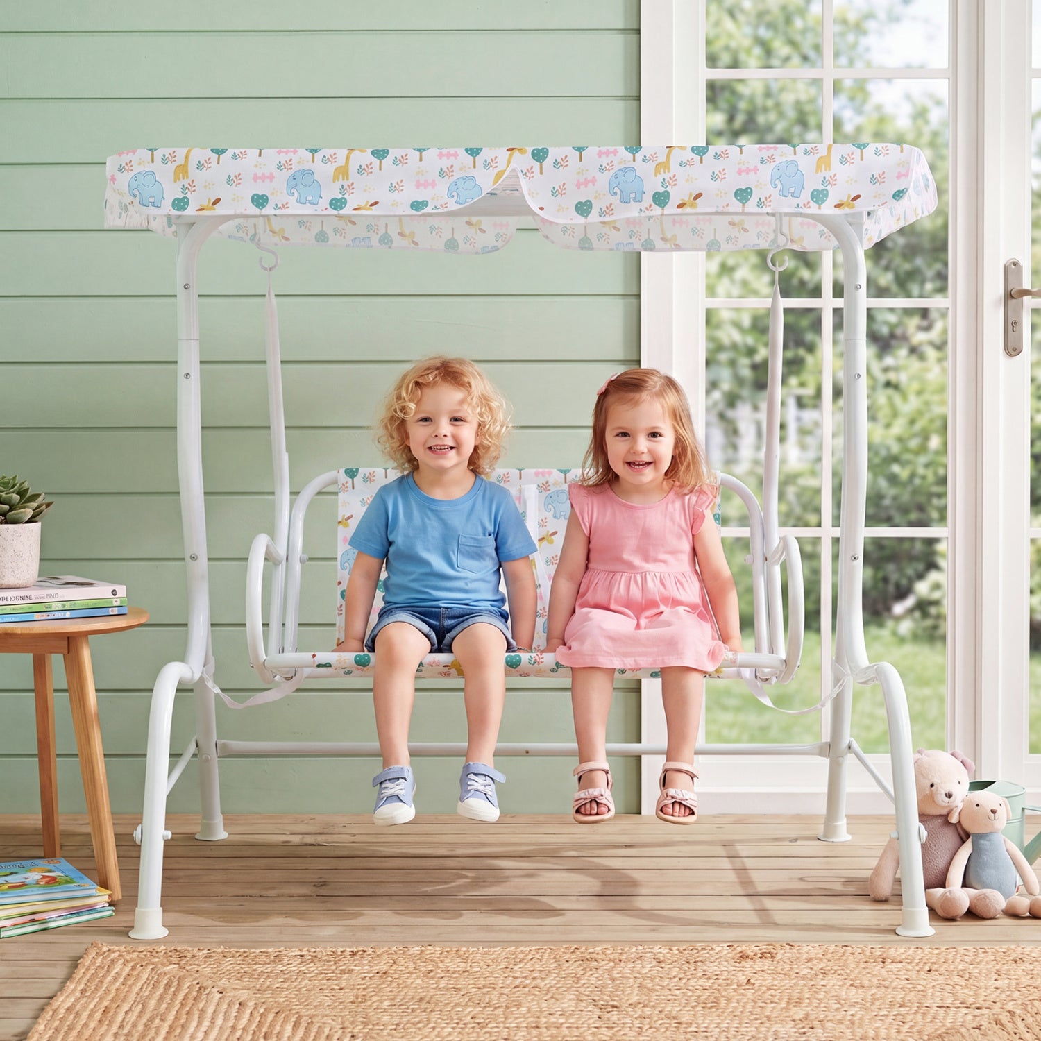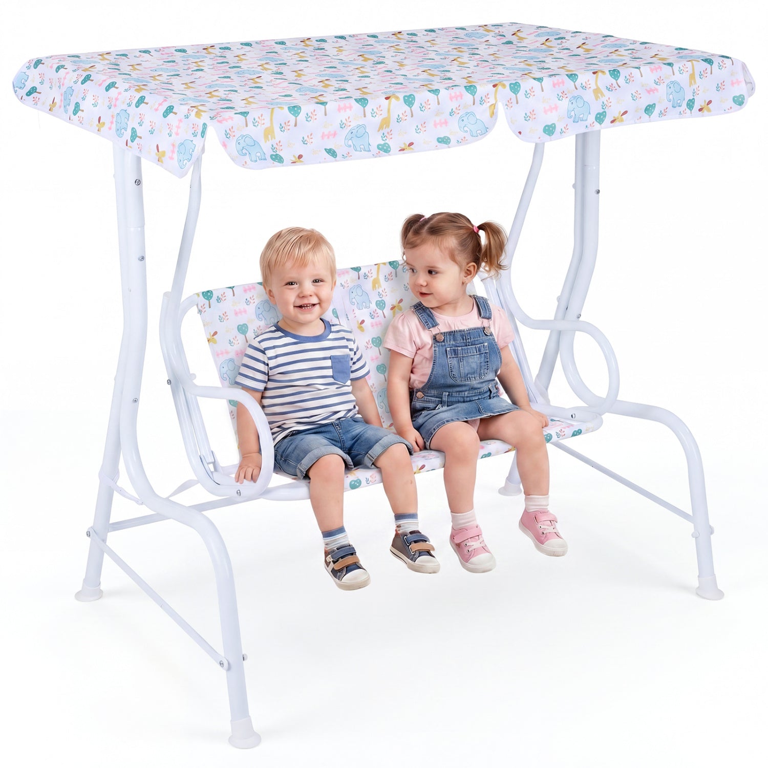 - Kids Patio Swing 2-Seater Outdoor Porch Swing Lounge Chair with Adjustable Canopy