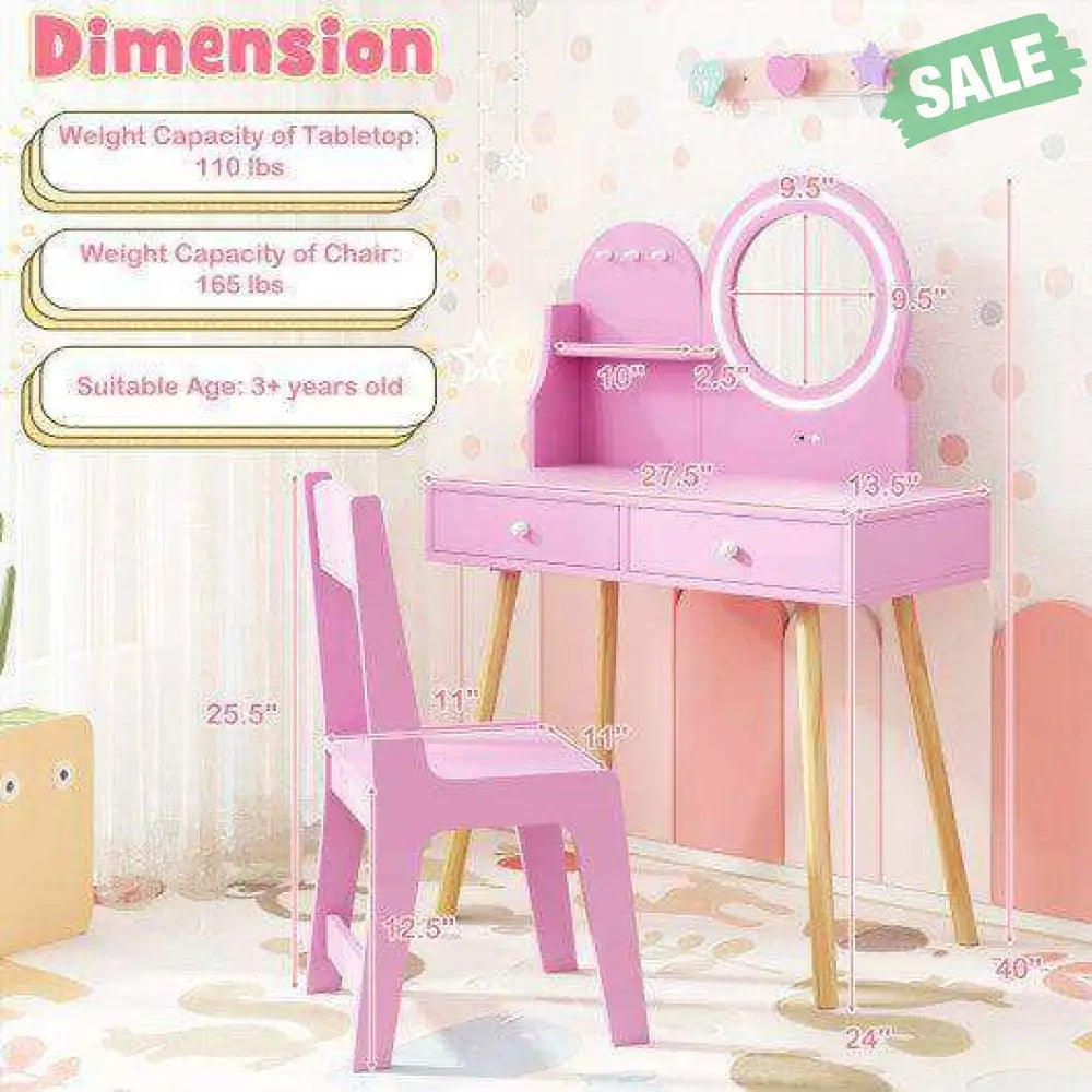 ● Perfect Gift for Kids: Ideal for birthdays holidays Christmas or any special occasion this multi-use kids vanity set is the ultimate delightful gift for your children suitable for dressing reading writing drawing etc. Table dimension: 27.5" x 13.5" x 40" (L x W x H). Chair dimension: 14" x 12" x 25.5" (L x W x H).