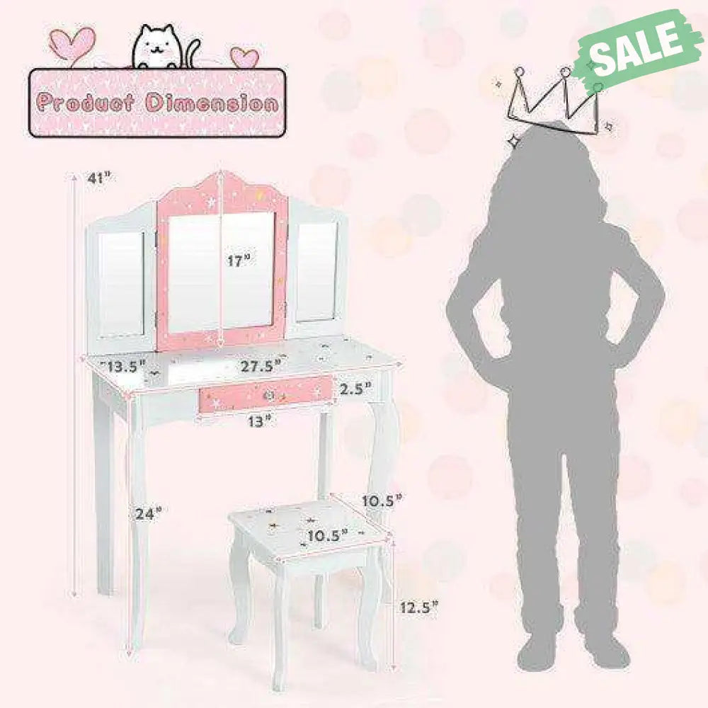 Are you looking for a cute and practical gift for your child? If so please don't miss this vanity table and stool set!