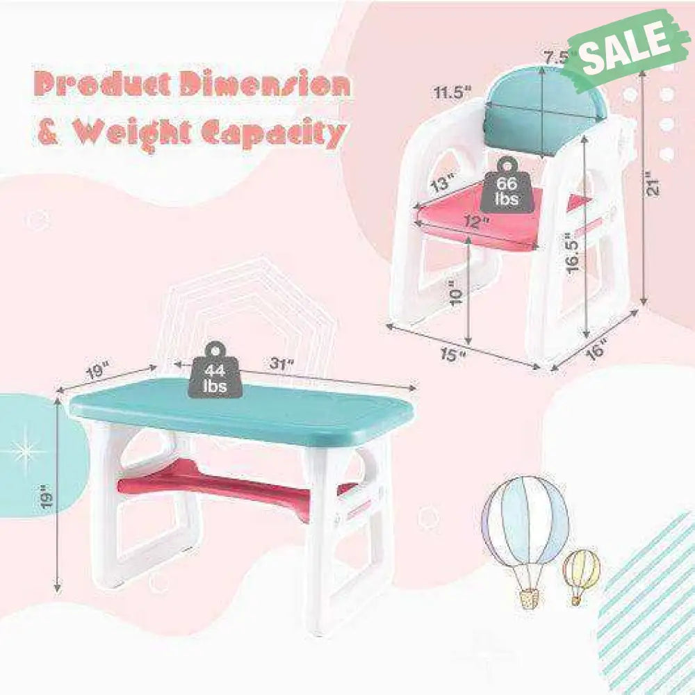 ‚óè Quick Assembly and Easy Cleaning: Equipped with complete accessories and detailed instruction this kids desk and chairs set is easy to assemble in a short time. And the waterproof and smooth surface is easy to clean with a damp cloth. Desk size: 31" x 19" x 19" (L x W x H); Chair size: 16" x 15" x 21" (L x W x H); Suitable age: 1-5 years old.