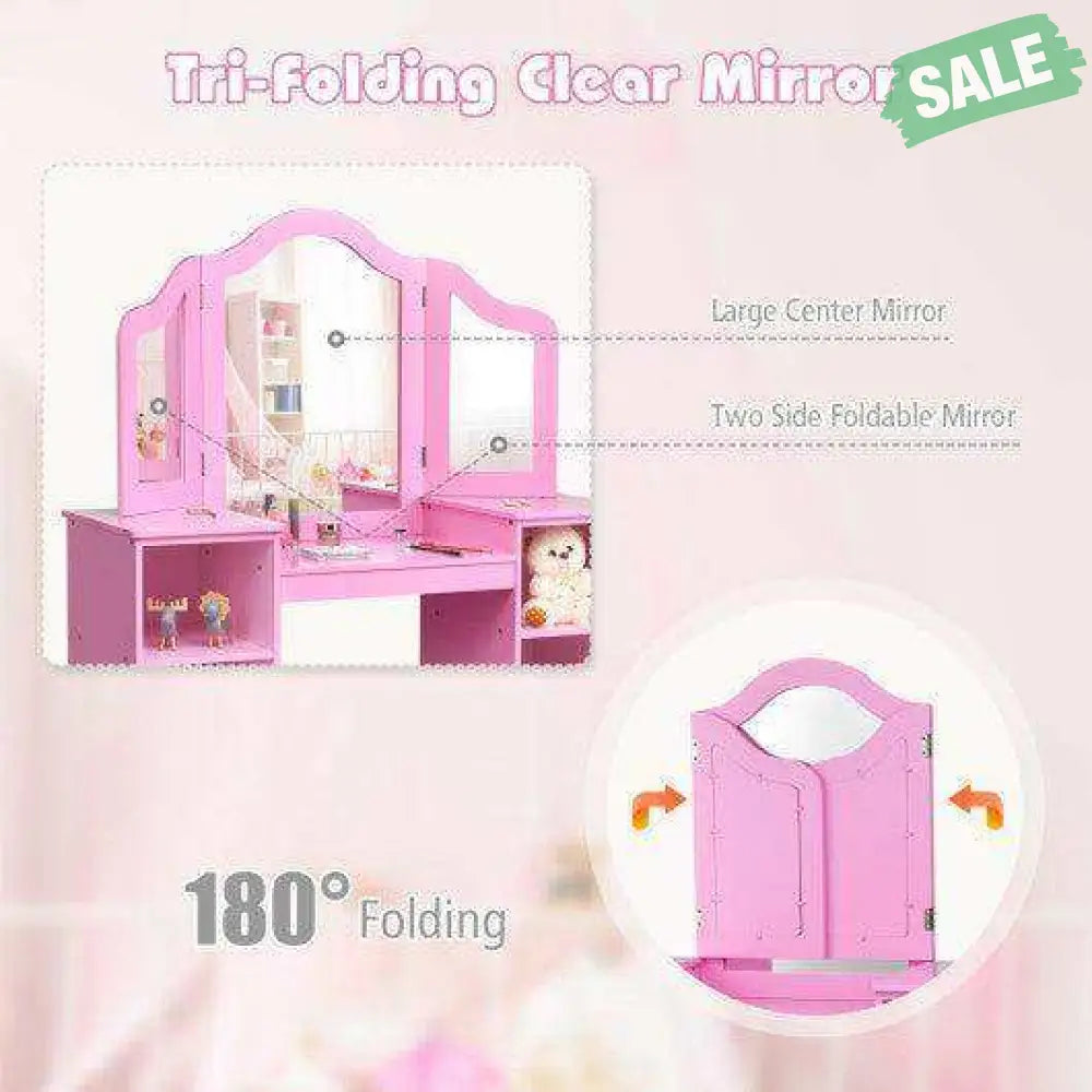- A Great Gift for Kids: The vanity is in small size and designed specifically for children but it also provides enough space for pretending to play which is conducive to improving children's hands-on ability and imagination. Every girl wants a beautiful dresser with jewelry and cosmetics. Buy an ideal vanity for your kids!