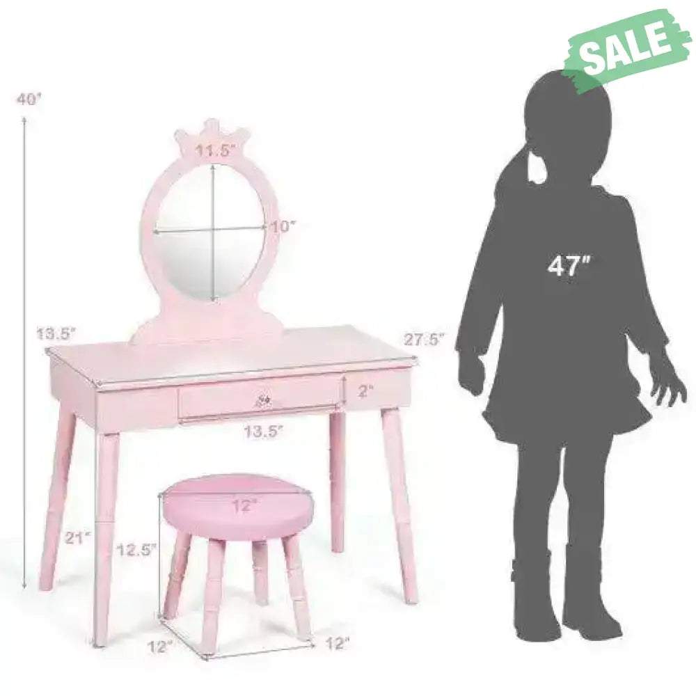 - Pink vanity set has a cute appearance which is a good gift for your kids and they will like it