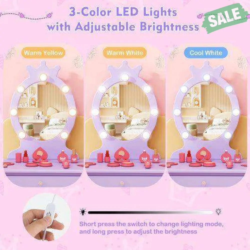 - Lovely Gift for Little Princesses: Designed with top crown decoration the kids vanity set will be a perfect gift option to surprise your little one on birthday Christmas or other festivals. It will be an ideal choice to accompany 3-7 years old children to make up.