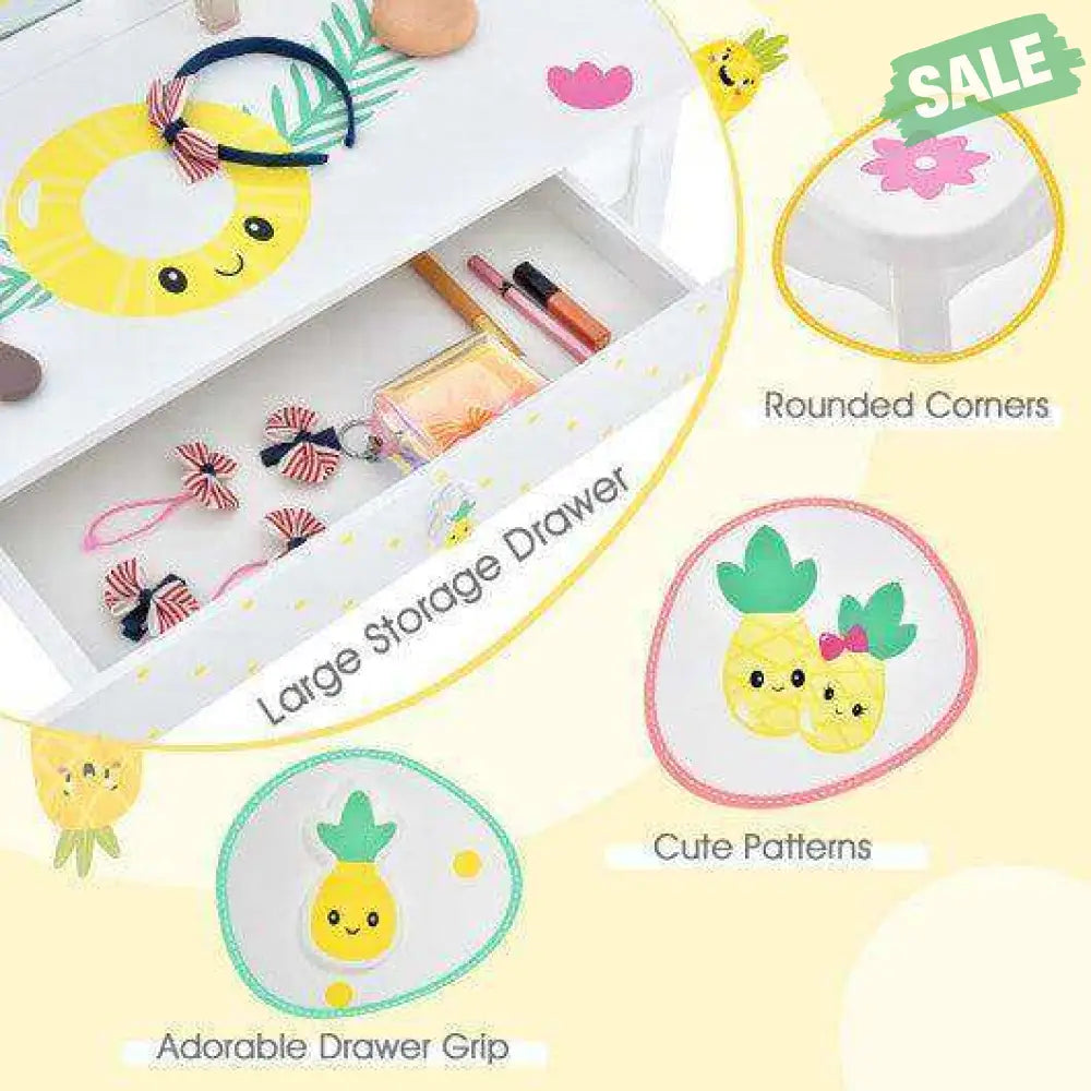 ● Perfect Gift for Little Princesses: Designed with lovely pineapple patterns this kid's vanity table and chair set is an ideal gift option for your little princess ages 3+ years old. Measuring 27.5" x 13.5" x 38"(L x W x H) the table is suitable for kids to use.