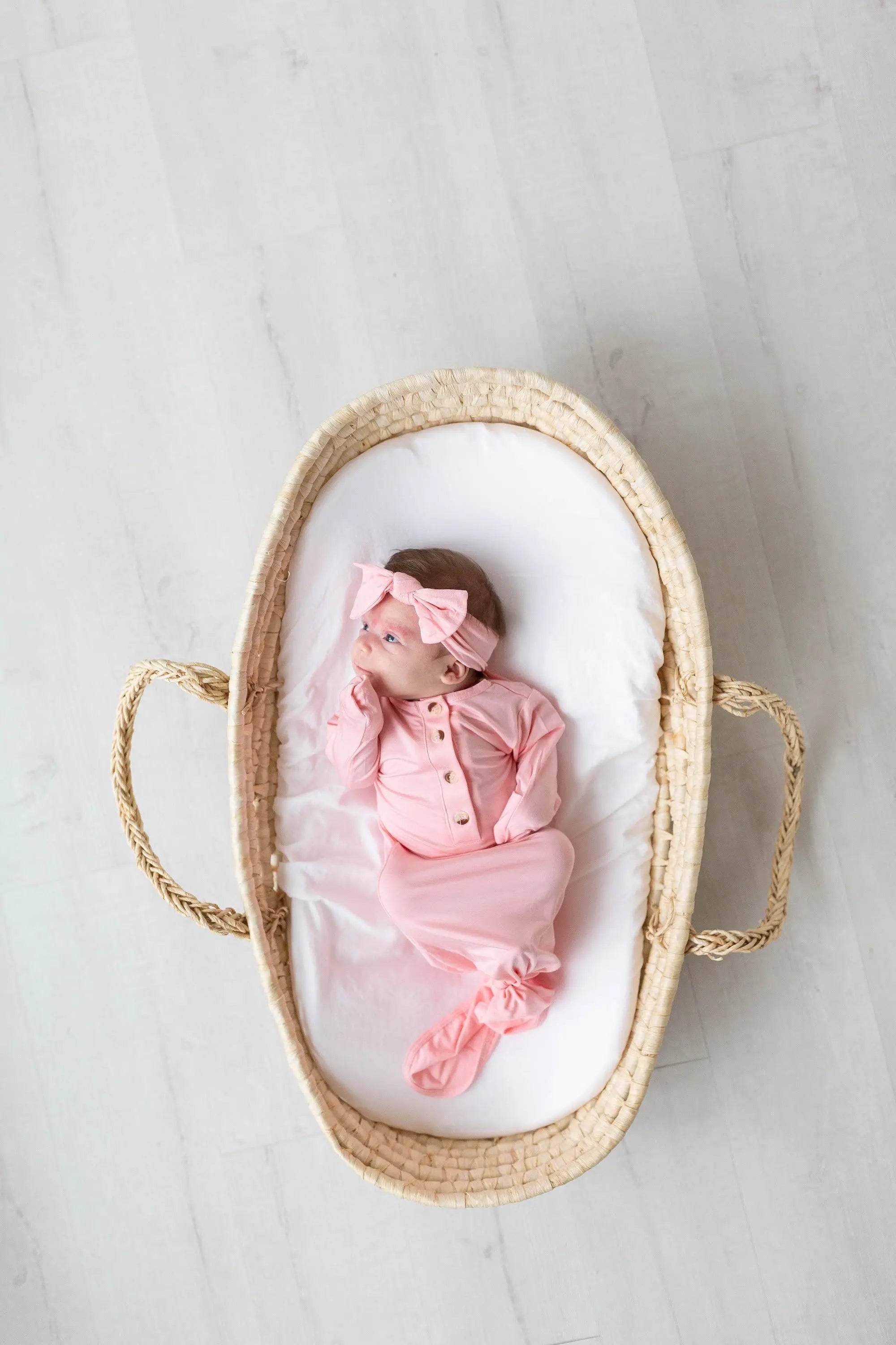 Complete Set for Newborns – Our soft, stretchy newborn baby girl clothes and unisex options include a knotted gown and hat, with select sets for girls featuring a matching headband. Made from a luxurious Modal and Spandex blend, these outfits keep your baby cozy and snug, fitting infants up to 3 months.