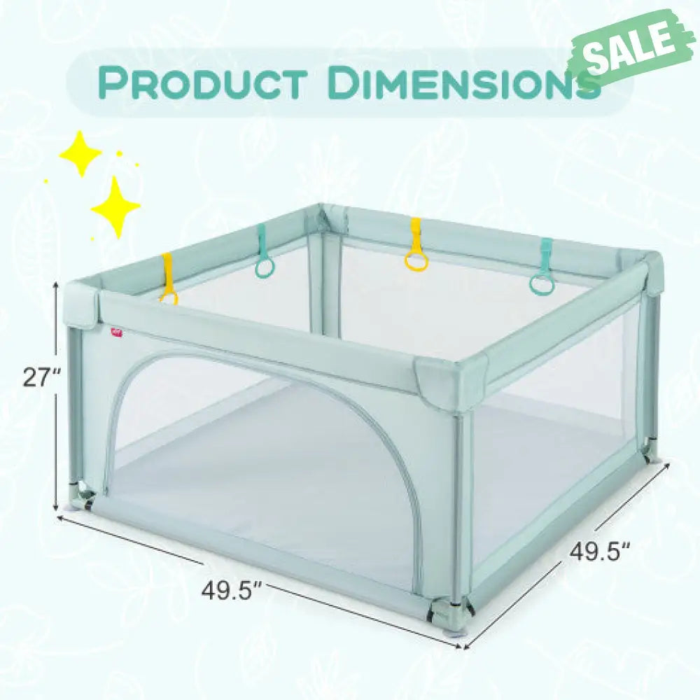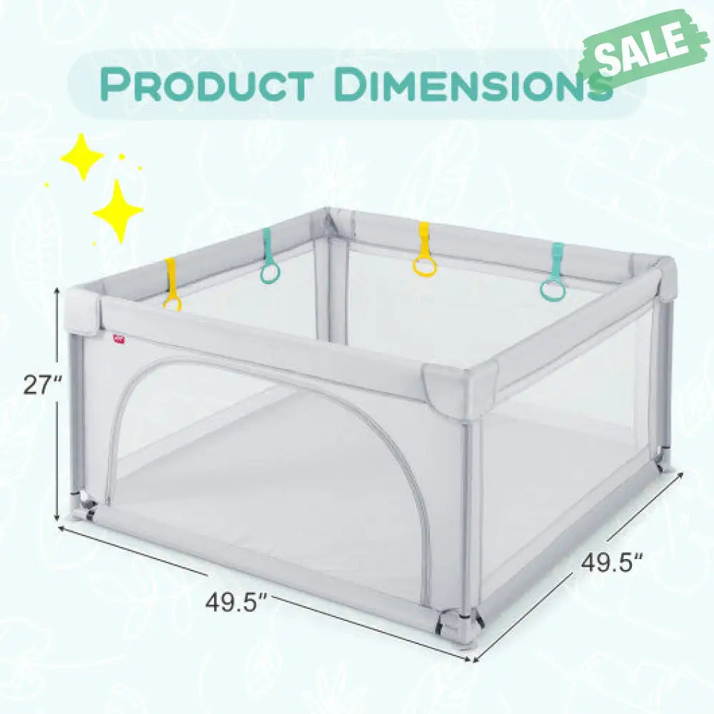 ● Large Play Area and Scientific Height: the baby plays with the dimensions of 49.5" x 49.5" x 27" and provides more than 34.5 cu. ft safety playing space for baby. The height of the fence is high enough for the baby to stand and walk while having enough area inside the playpen to explore around.