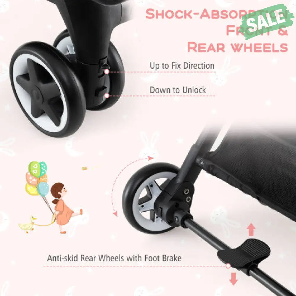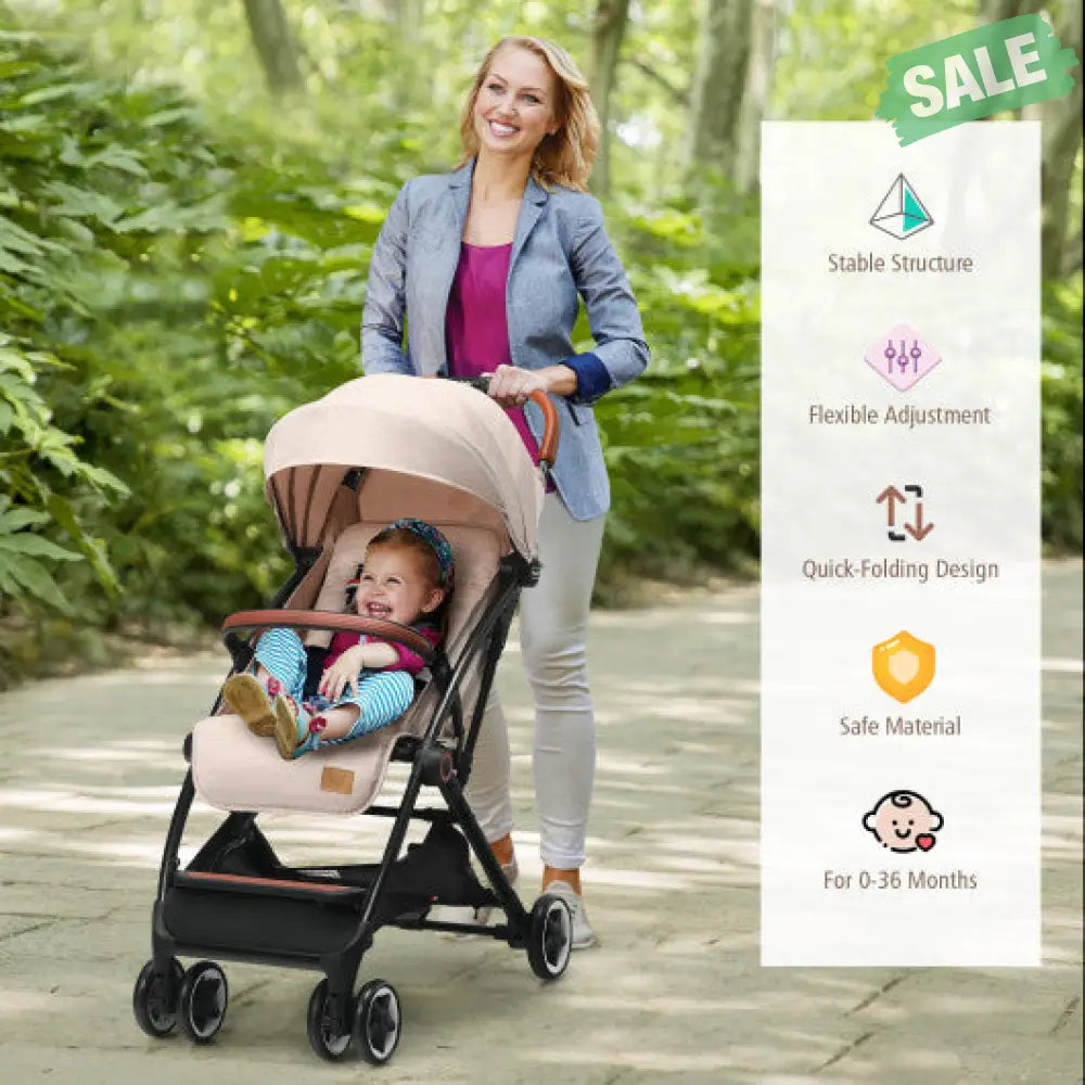 ● One-Rod Portable and One-Hand Folding Design: A foldable and lightweight stroller makes any outing a little easier! Pressing the button on the handrail and quickly fold the stroller with one hand there is no need to bend down. A hidden pulling rod is designed for you to pull the stroller after it is folded leaving one hand free for you to hold the baby.