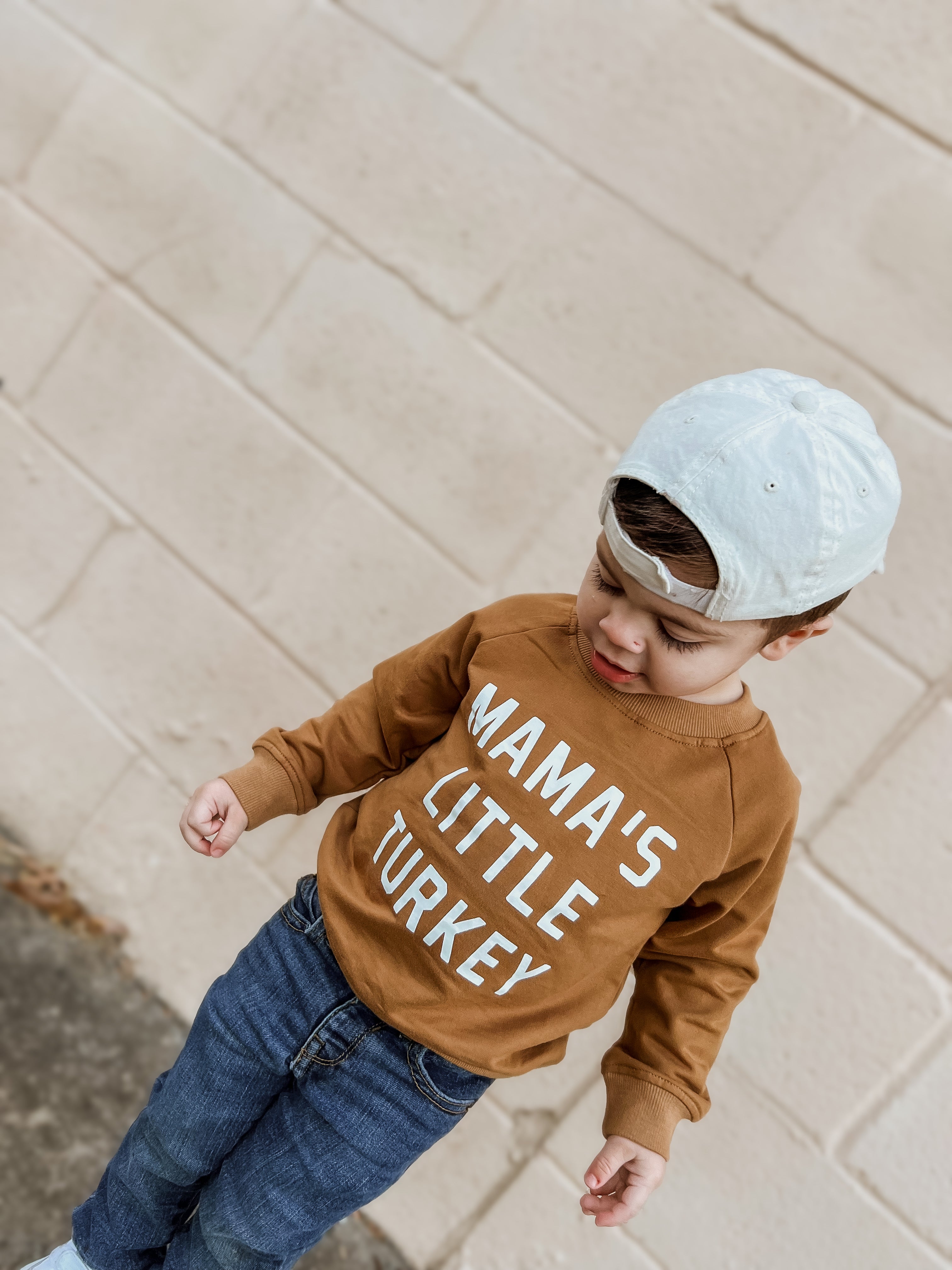 Celebrate Thanksgiving with your little one in our "Mama's Little Turkey" Organic Cotton Sweatshirt! This adorable, 100% organic cotton sweatshirt is designed with comfort and warmth in mind, perfect for those crisp fall days. With a playful Thanksgiving-themed graphic, it’s sure to be a hit for holiday gatherings, family photos, or simply cozying up at home. Soft, breathable, and gentle on sensitive skin, this sweatshirt combines festive charm with eco-friendly materials, making it a great choice for conscious parents. Let your little turkey shine this Thanksgiving season in style!
