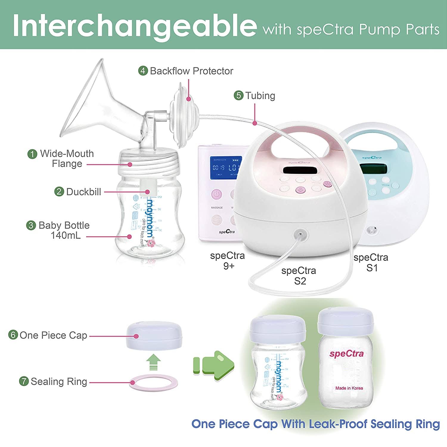 - Connects directly with spectra S1/S2 wide mouth bottles. Compatible with spectra duckbills, spectra wide neck bottles and backflow protectors; Compatible with Maymom valves and long stem backflow protectors