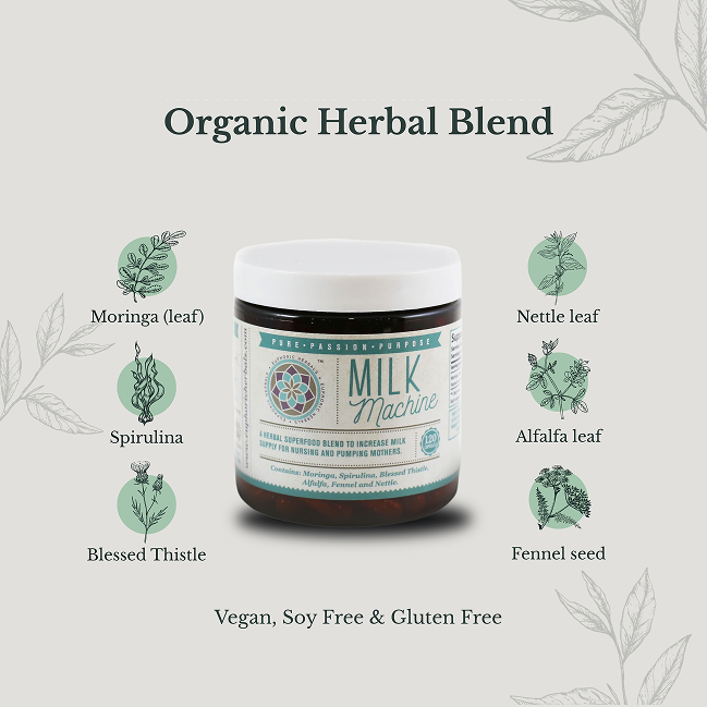 The Milk Machine is infused with a synergistic blend of powerful herbs and botanicals, carefully selected for their well-known lactogenic properties.