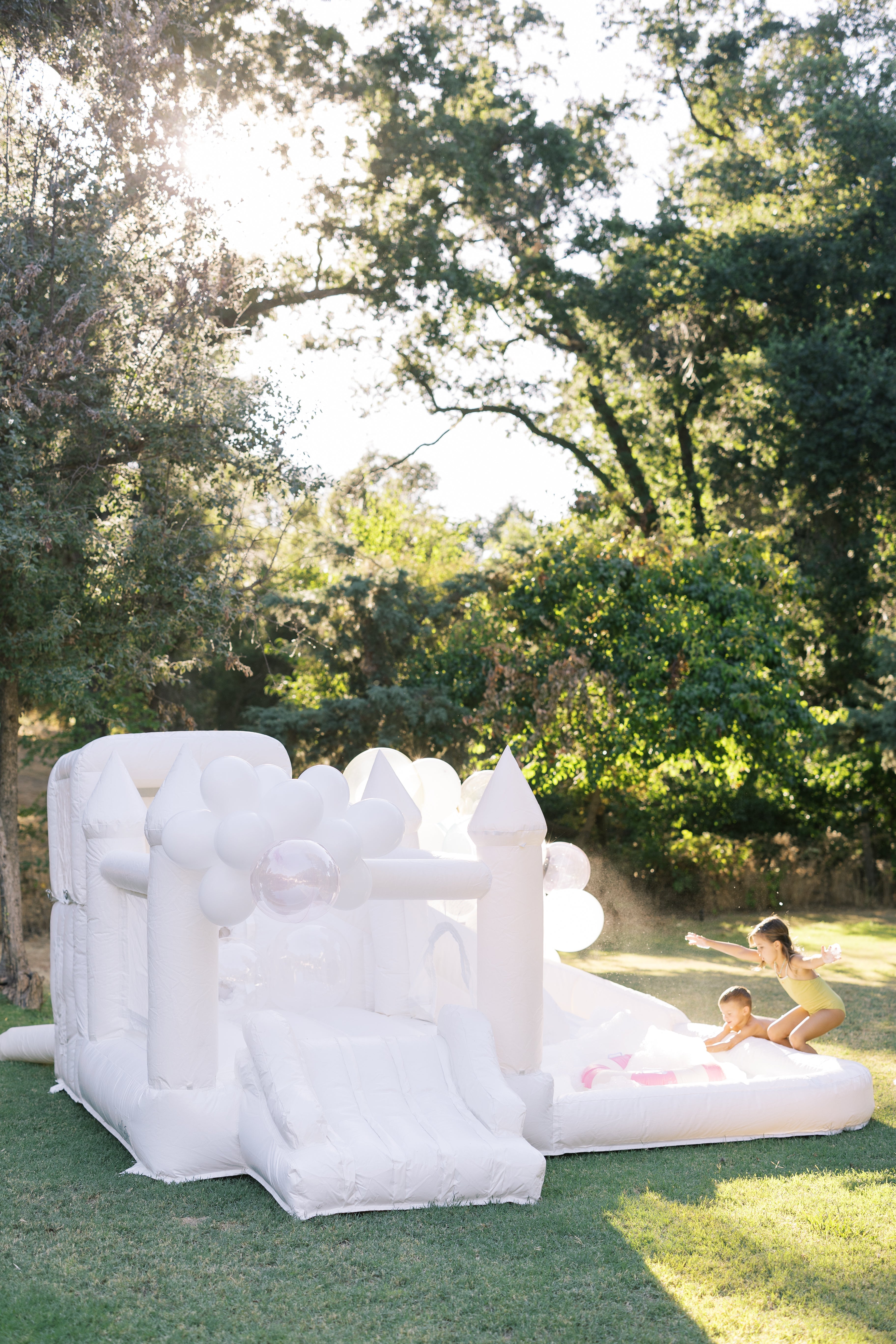 Image is for promotional purposes and not to be used as a guide for set-up. Please read our post titled “How To Set-Up Your Bounce House Indoors”, for details.