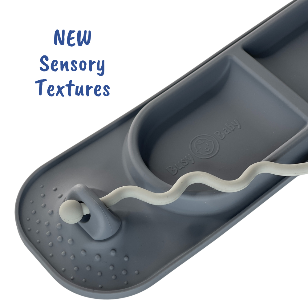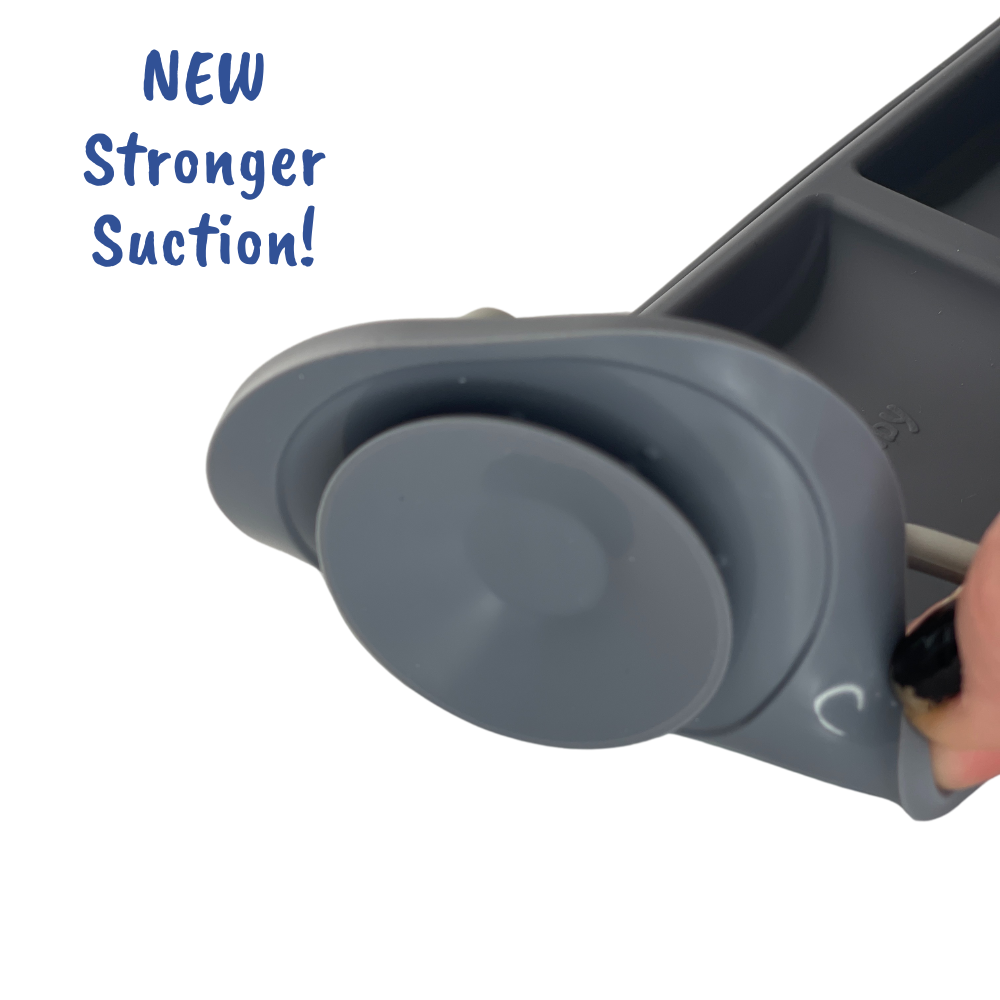 The Mini version of our award-winning Silicone Placemat makes it perfect for smaller trays or travel. NEW AND IMPROVED suction and sensory features. It includes three suction cups to keep the mat in place on smooth surfaces or to wrap around stroller handles, shopping carts and more. 2 tethers (toy straps) keep utensils, toys, and teethers within reach and off the floor! Use it at home or on-the-go with the convenient travel wet bag. *Will not work with Lalo or Stokke Tripp Trapp high chairs.