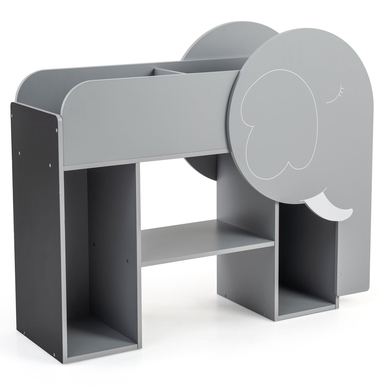 - Montessori Bookshelf with Elephant Shape 3-Tier Toddler Toy Storage Organizer-Grey