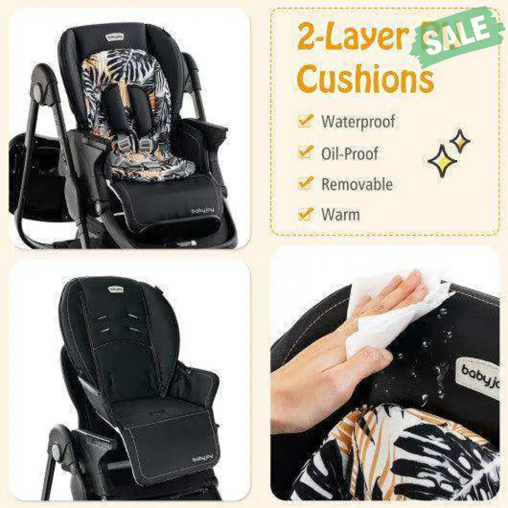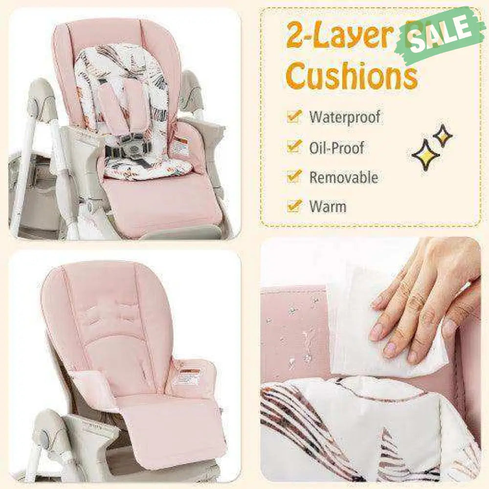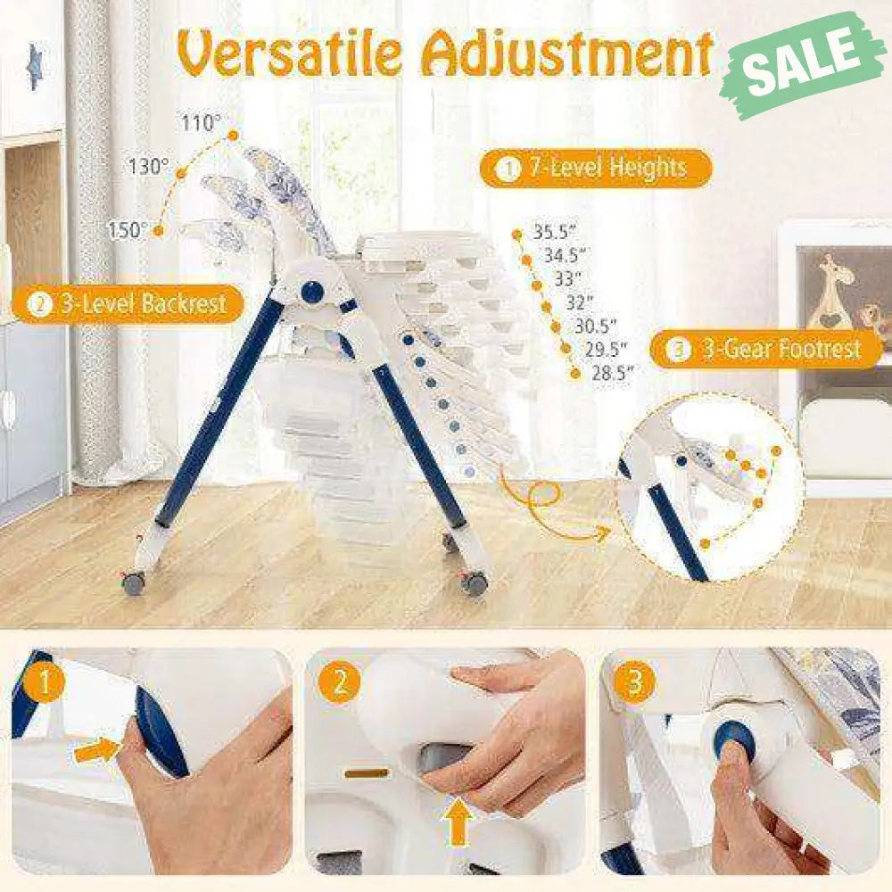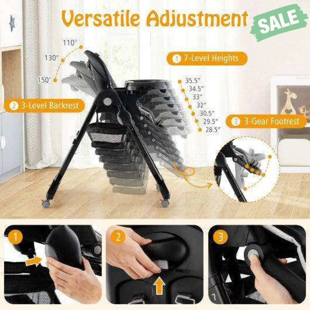 ● Versatile Adjustment: Featuring 7-level heights 3-level backrest 3-gear footrest and 3-level footrest height this baby high chair meets multiple demands of babies at different growing stages. Enjoy the convenience and comfort brought by this high chair!
