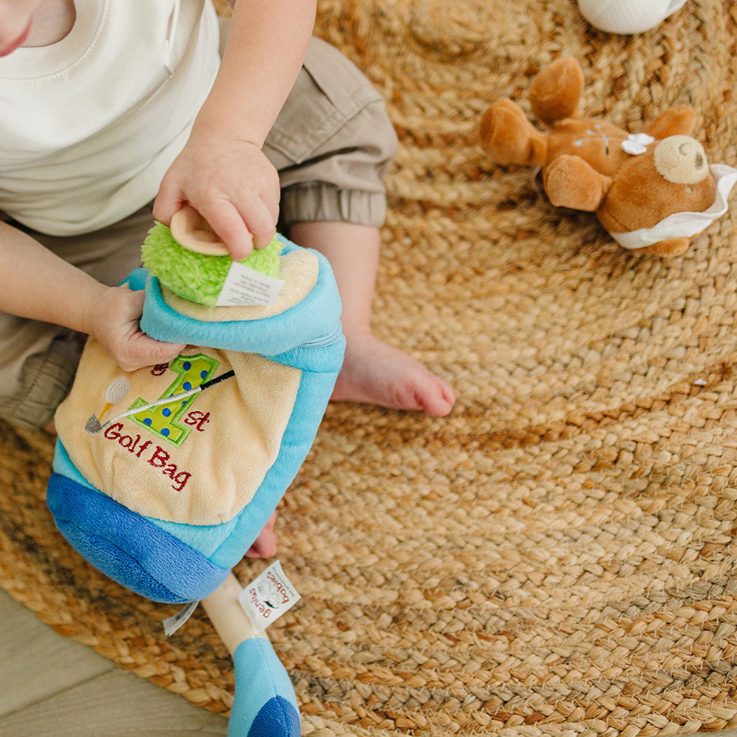 - Calling Your Golf Baby! This lightweight my first golf bag plush set is perfect for small hands. It's a unique, keepsake gift for golf loving parents and great for golf baby shower themes.