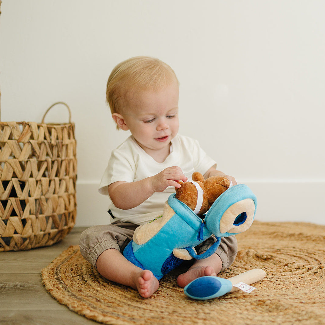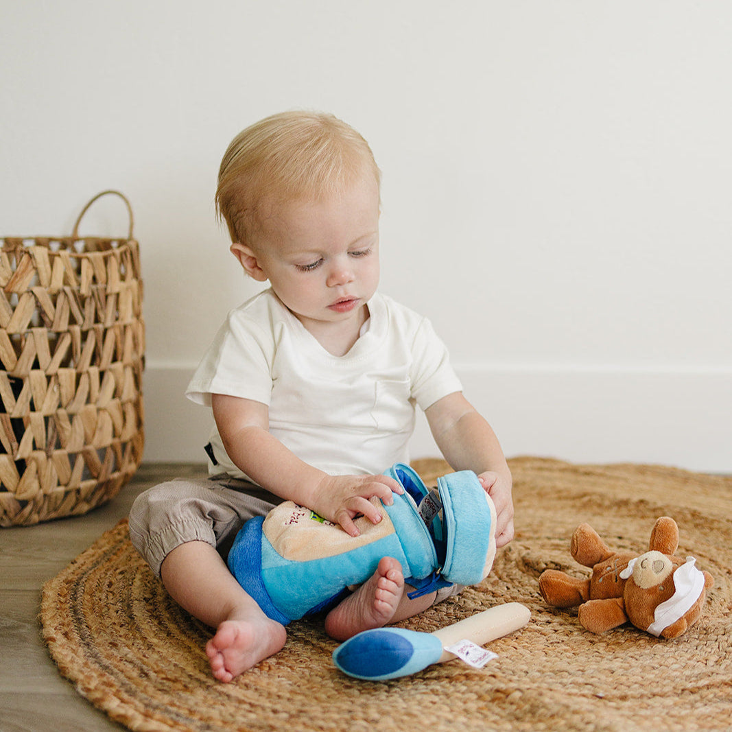 The blue bag is lightweight and crafted to the perfect size for small hands, making it an ideal baby golf toy for ages 0-6 months and up. Each toy in this baby golf set is designed with different textures and sounds to stimulate your baby's senses and curiosity. These baby golf toys teach the baby cause and effect and assist in developing their grasp.