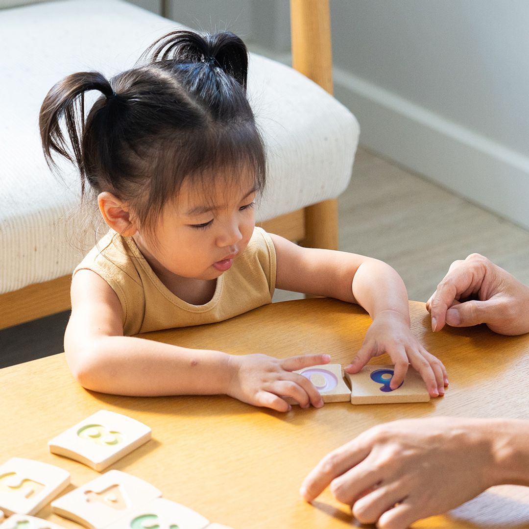 This 20-piece wooden tile set makes learning numbers as easy as 1-2-3! The two-sided tiles feature number 1-10, colorful pictures and words that help children count, match, spell and trace the numbers.