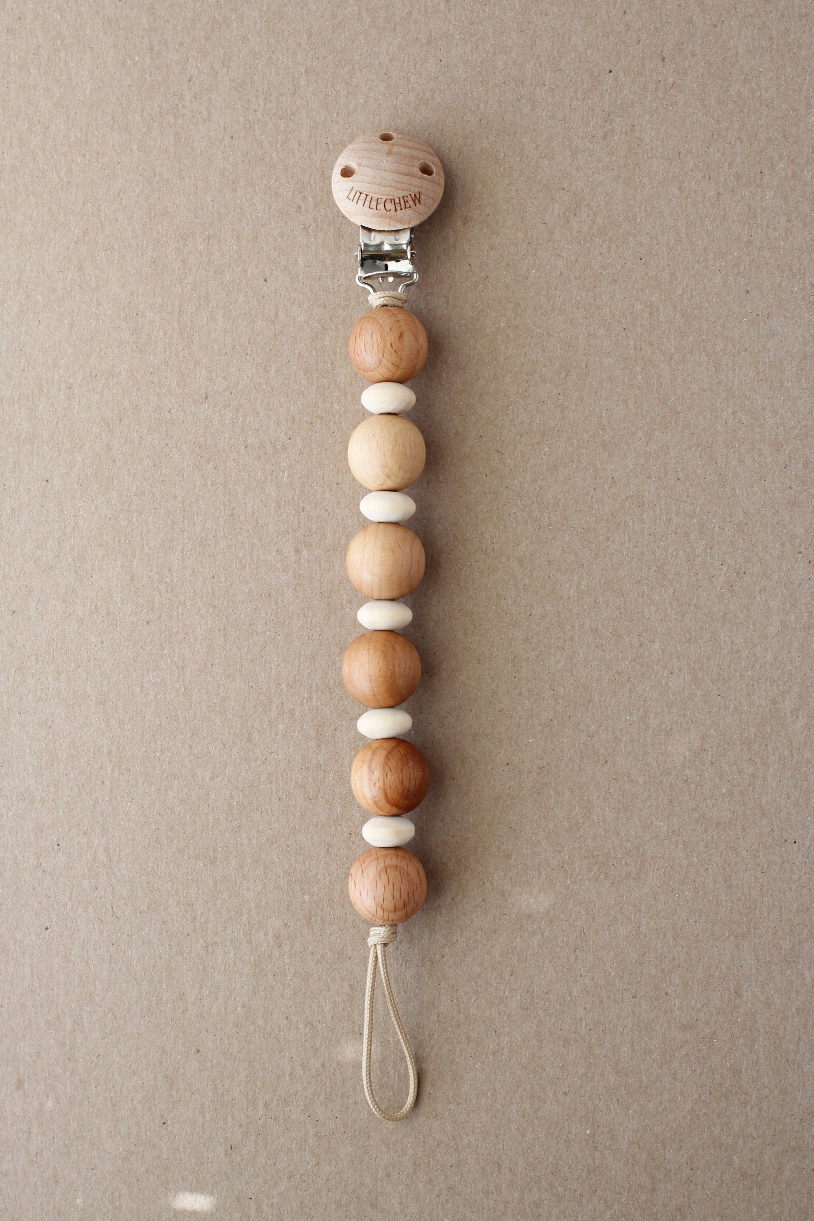 Our Kozuk pacifier clip is handmade of natural wood that has been treated with coconut oil. Versatile, timeless, and practical, inspired by nature and its simplicity.