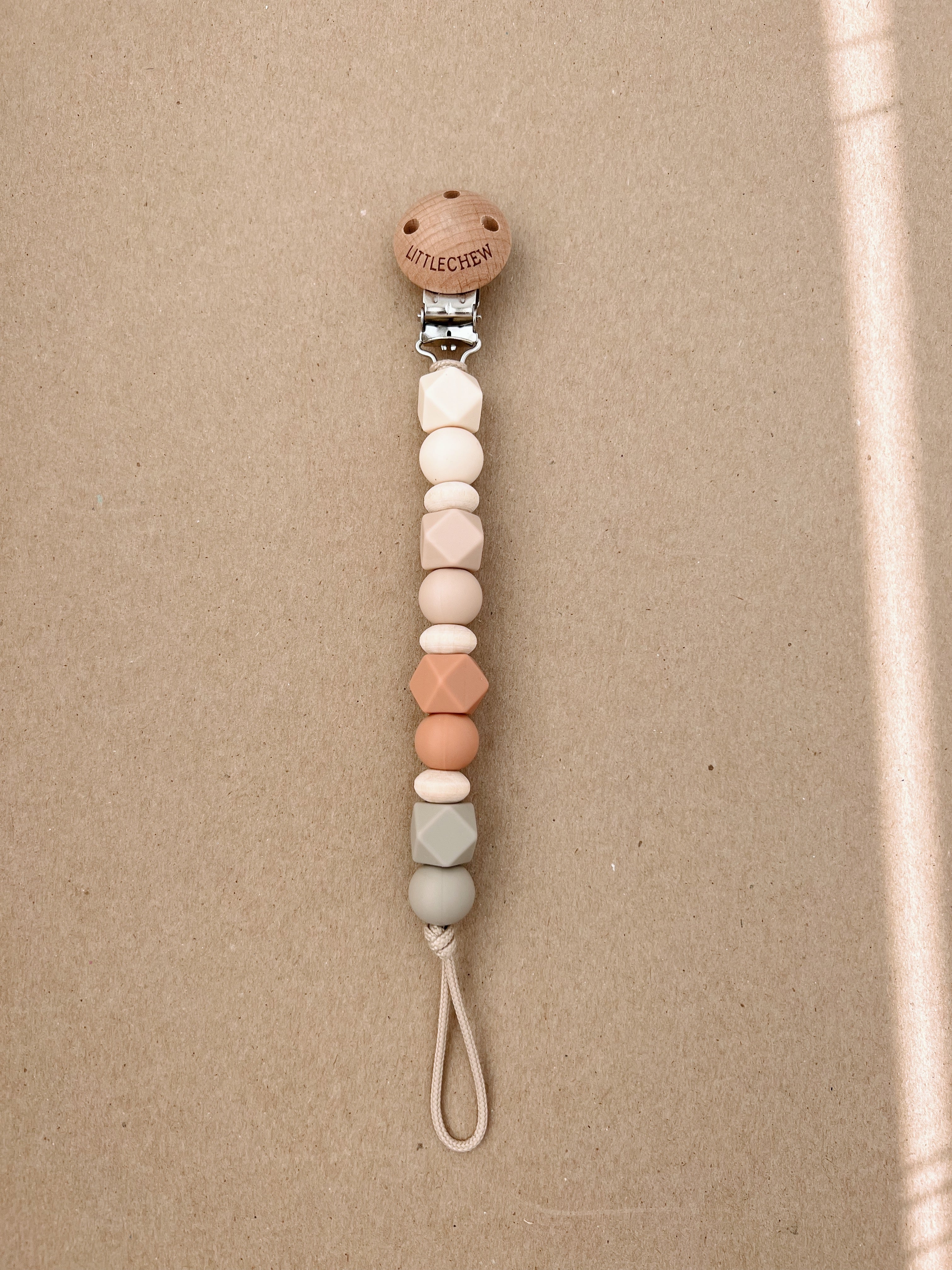 Our Robin pacifier clip is handmade of food-grade silicone and a mix of natural wood that has been treated with coconut oil. Versatile, timeless, and practical, inspired by nature, its beautiful colors, and simplicity.
