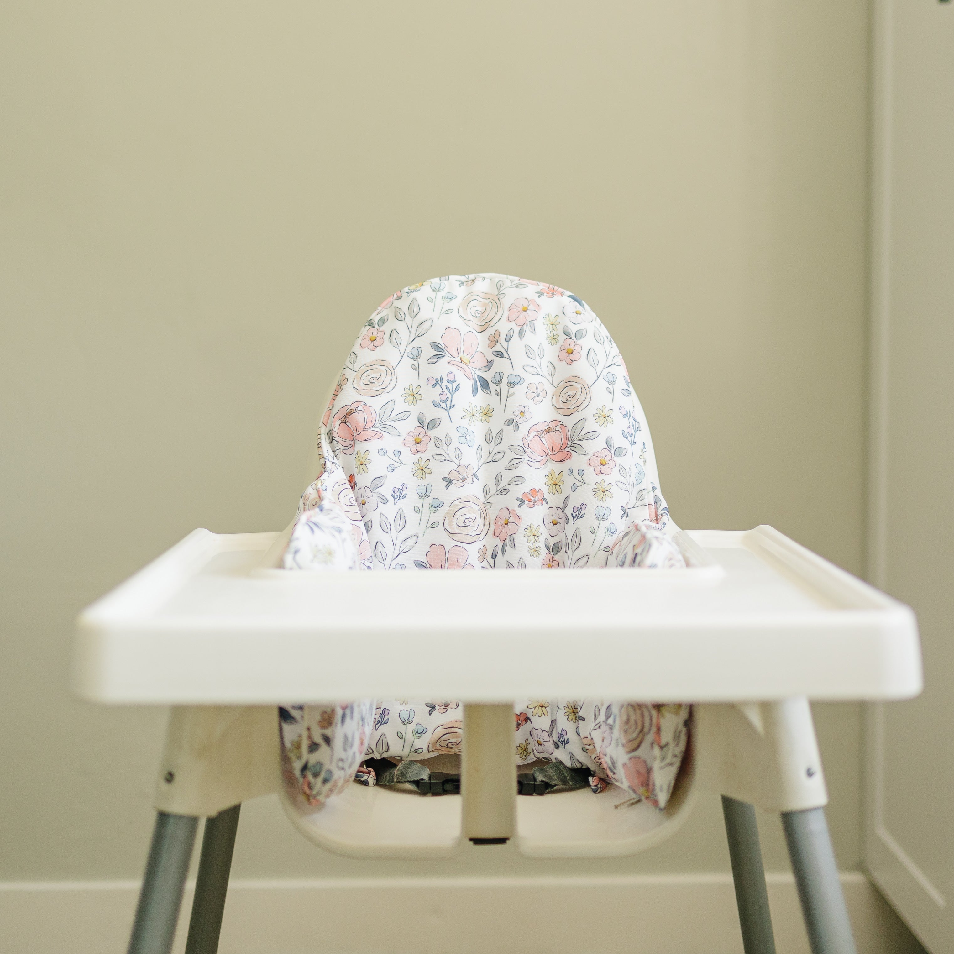 Pastel flowers on a white background! Wipeable cushion cover for the IKEA Antilop Highchair