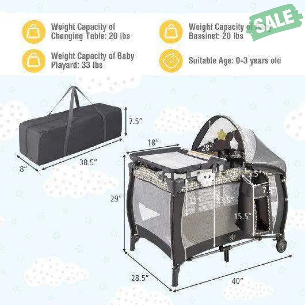 ‚óè 4-in-1 Baby Nursery Center: With multifunctional design you can use this baby nursery center as an infant bed with canopy and net a baby bassinet a changing table and a baby playard. The removable changing table is ideal for diaper or clothes changing avoiding back or waist pain.