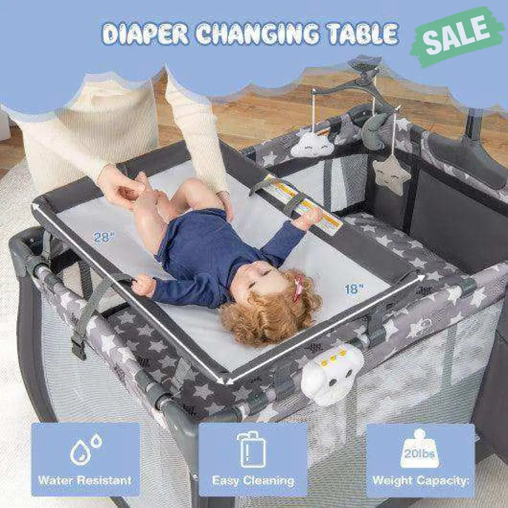 ● 3-in-1 Pack and Play: This convertible baby crib can be used as a baby bassinet beside parents' bed a changing table and a baby playard which accompanies the growth of your baby from a newborn to a toddler. Suitable age: 0-3 years old. With lockable wheels the mobility is easy.
