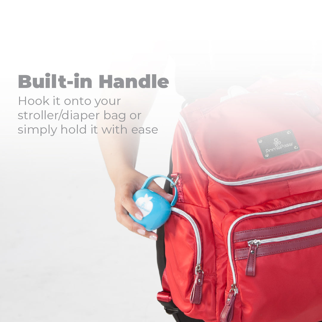 The new Primo Passi pacifier holder is made with a durable, BPA-free plastic. It has been specially designed with enough room to store up to 2 pacifiers in a clean and germ free place. The easy-store clip makes it convenient and easy to find pacifiers when you need it the most. Attach it to strollers, handbag, baby diaper bag and more.