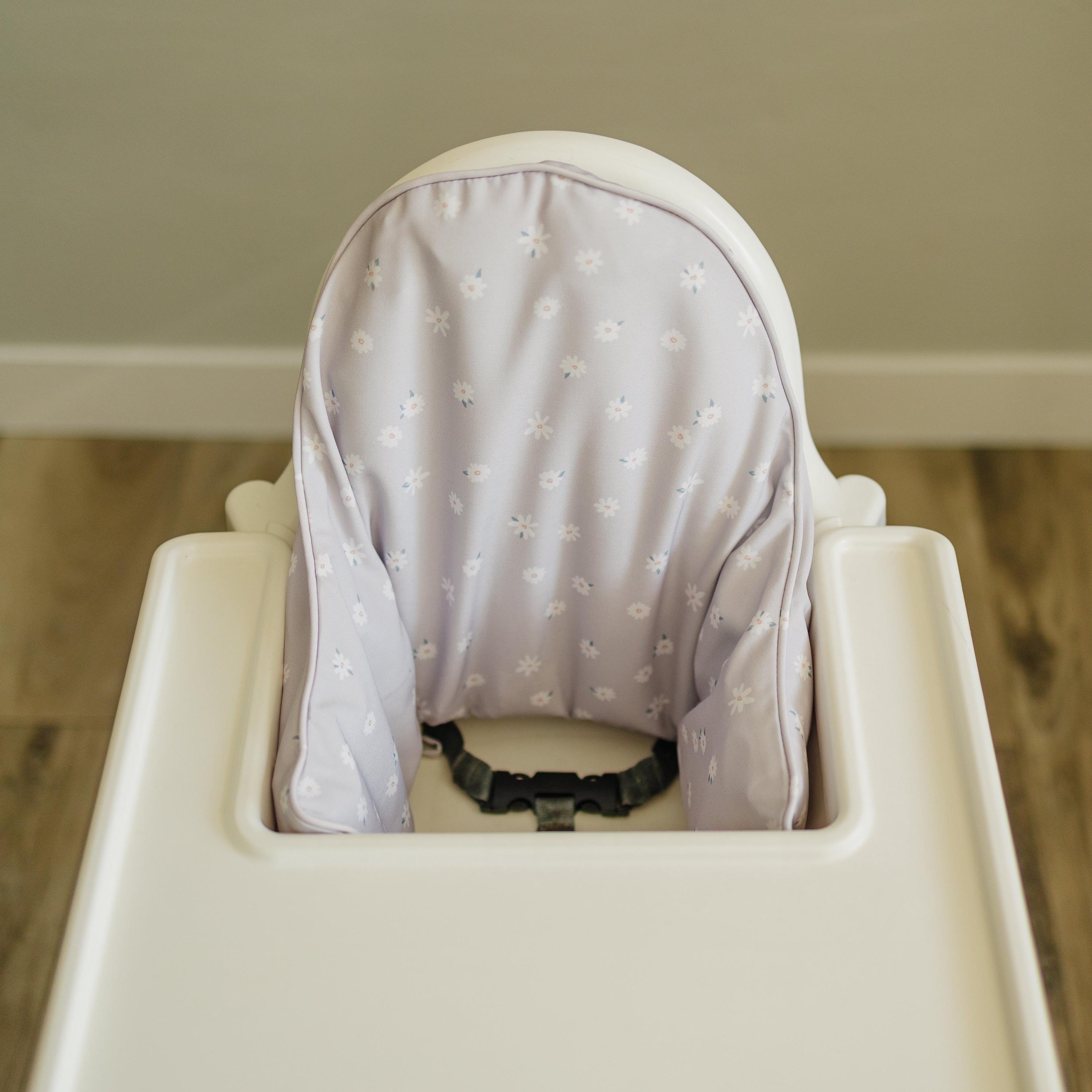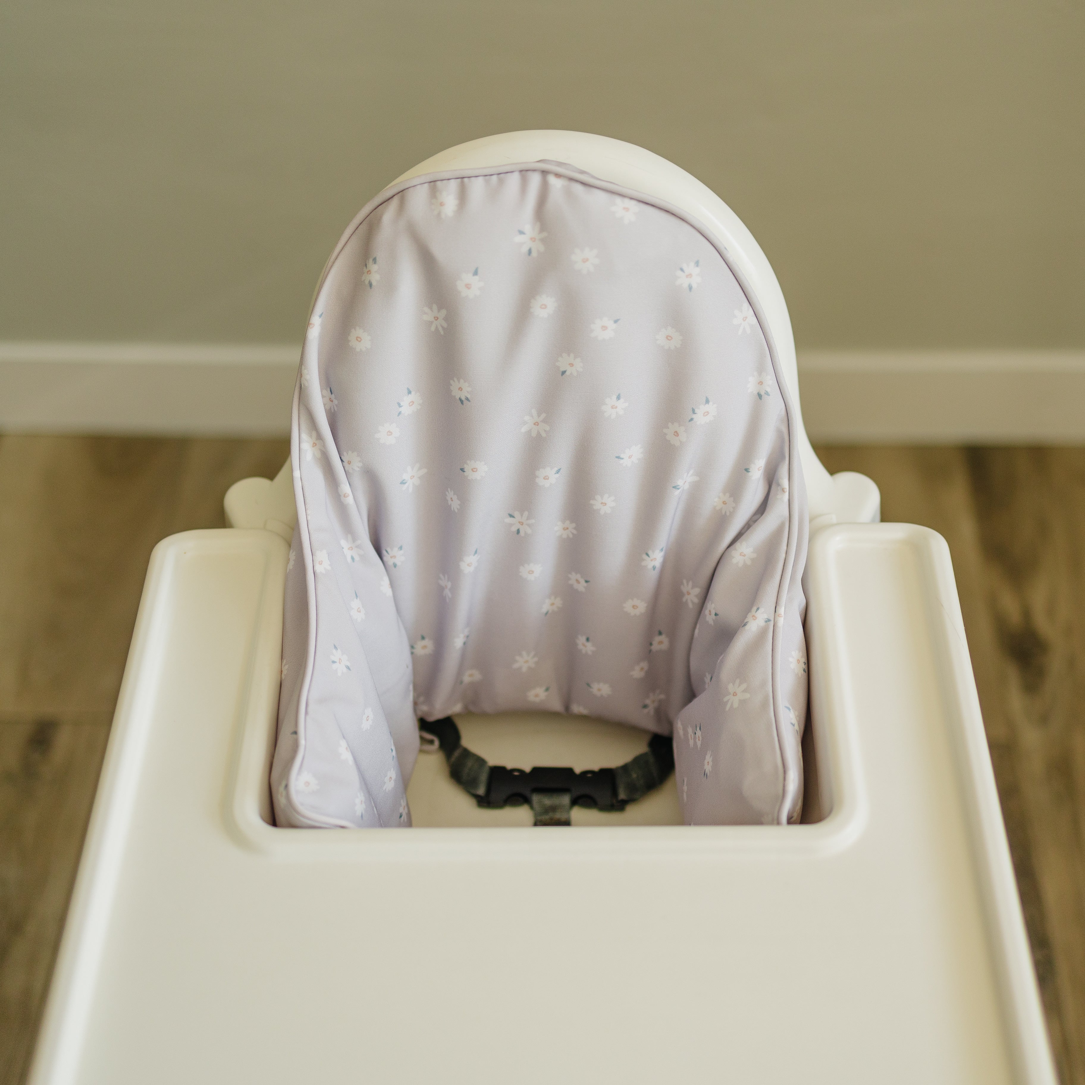 Tiny white daisies printed on pale lavender! Wipeable cushion cover for the IKEA Antilop Highchair