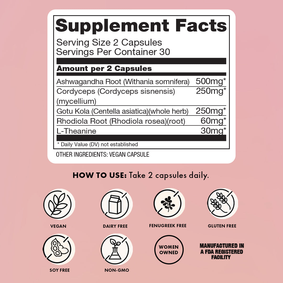 Provides powerful stress support with Gotu Kola, an adaptogen linked with reducing symptoms of anxiety to support your overall quality of life.