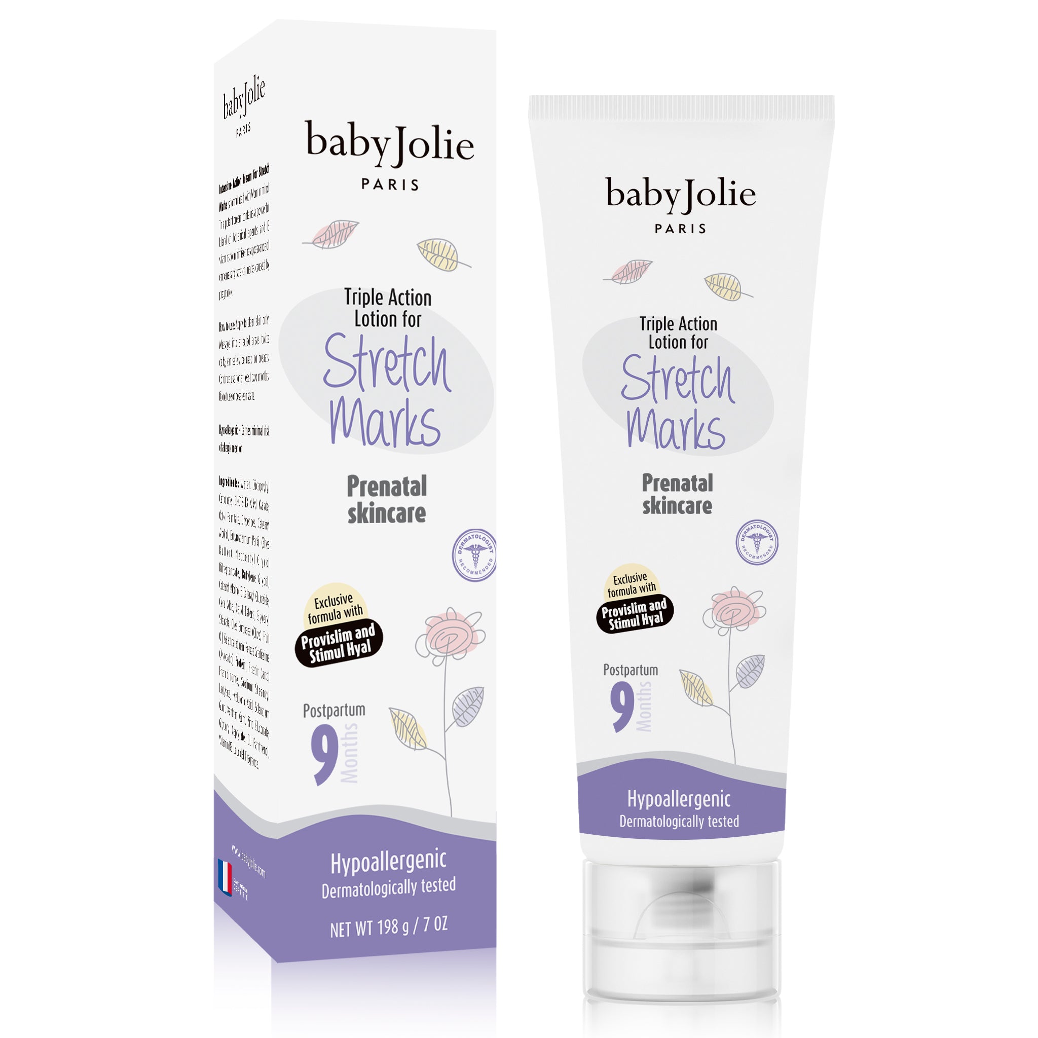 Triple Action Lotion-Stretch Marks is a prenatal skin care specially formulated for expecting and new moms. This premium Mom Skin Care product is a gentle and effective solution created by Mothers, for Mothers at Baby Jolie Paris with a special formula to prevent stretch marks.