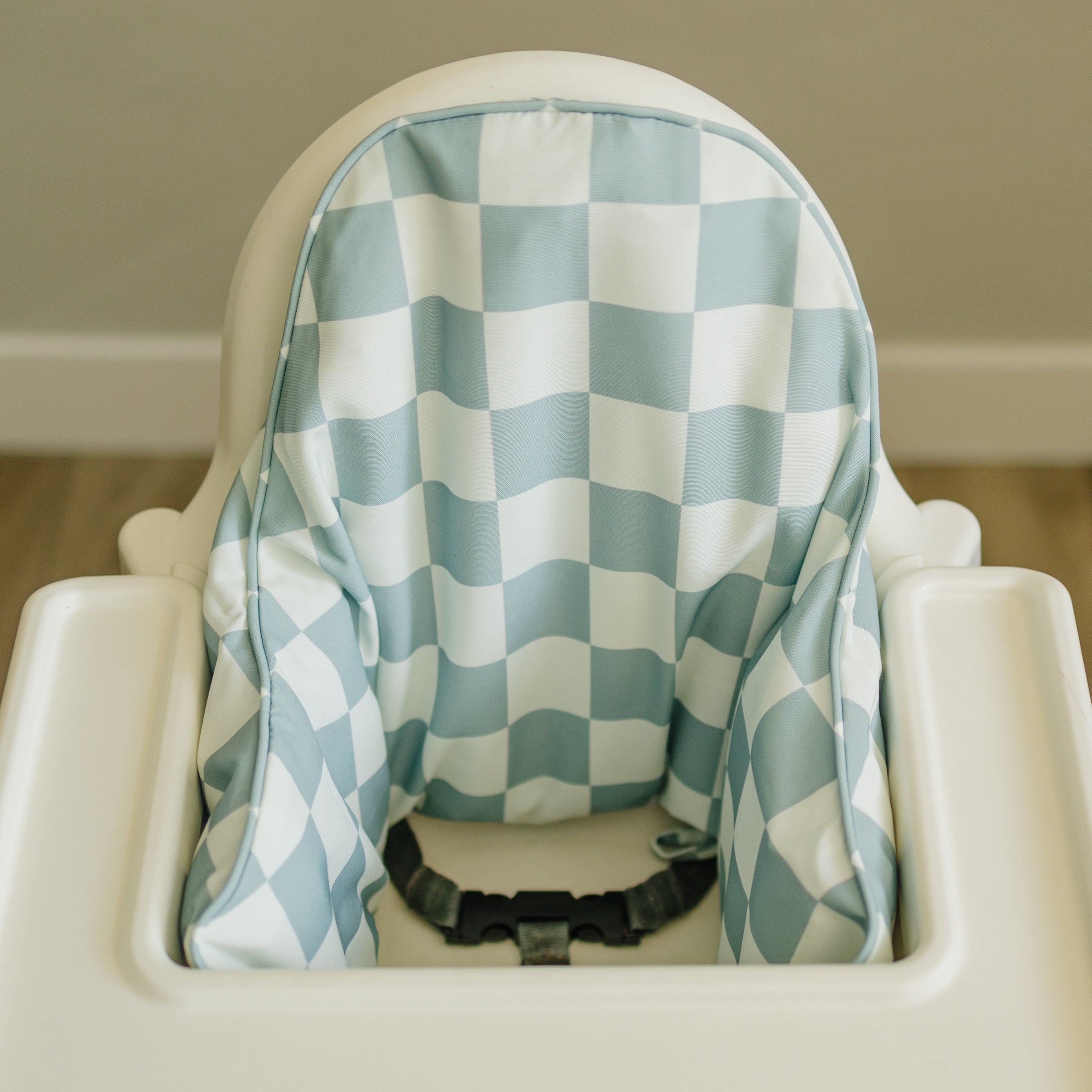 Sage checkered pattern. Wipeable cushion cover for the IKEA Antilop Highchair