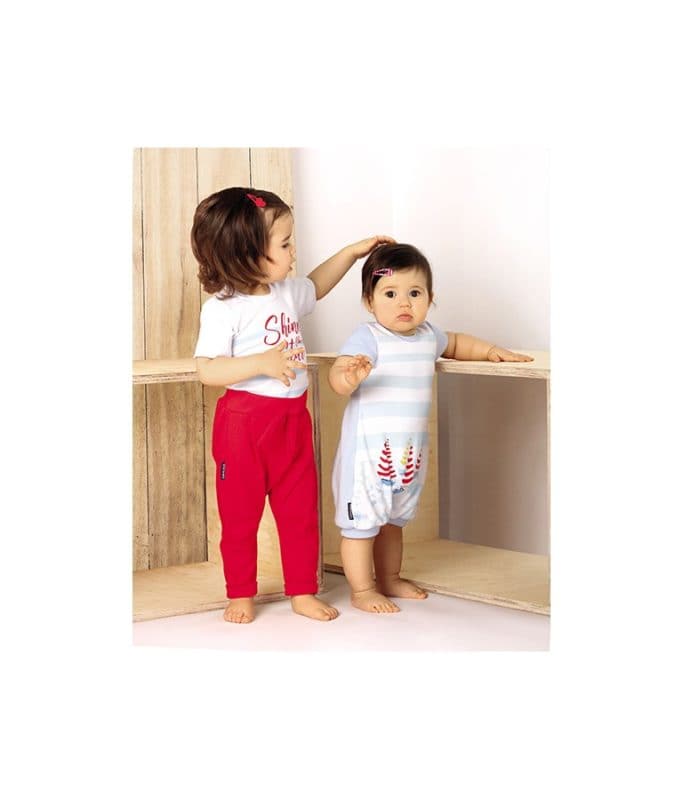 Toddler boys and girls unisex cotton romper with sailboat design for summer play.