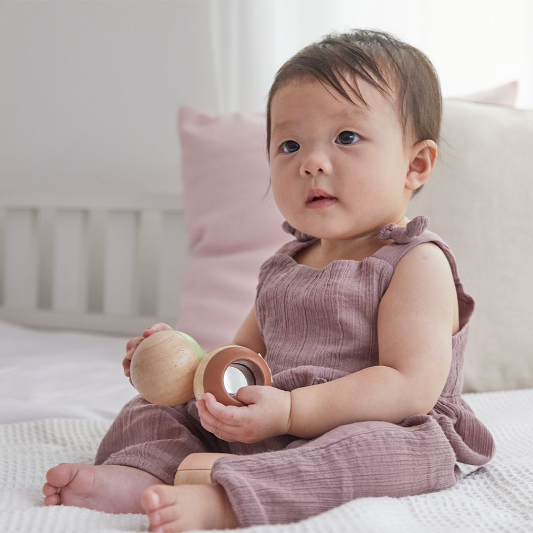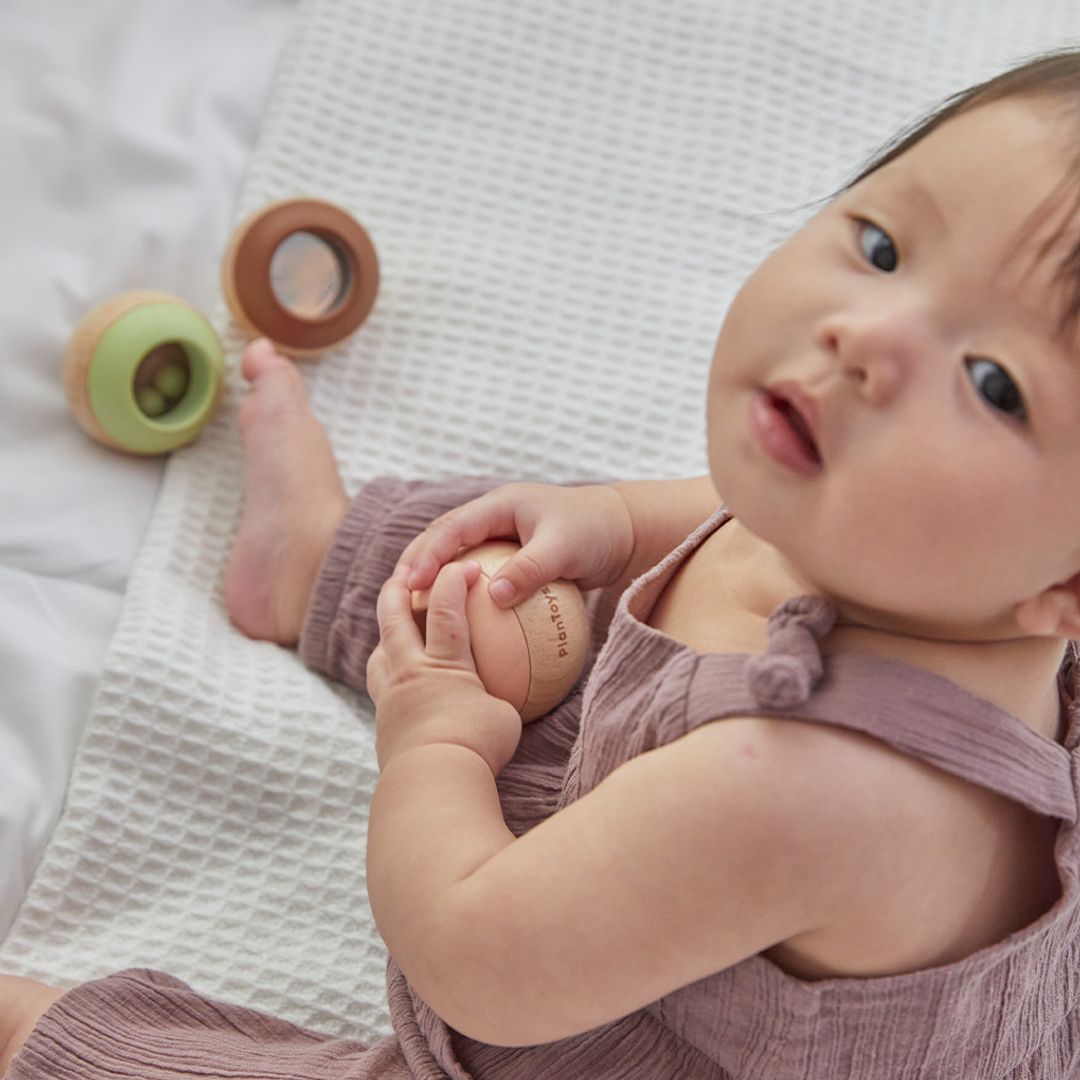 This PlanToys Sensory Tumbling comes in our new modern rustic colorway. This set of sensory balls introduces babies to auditory, visual, and tactile experiences - testing their ability to differentiate between different sounds, movements, and colors.