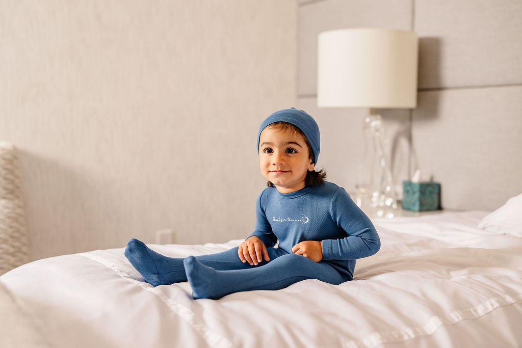 The Shoot for the Moon Footie in Royal Blue offers a perfect fit with just the right amount of stretch for all-day comfort. Its rich blue color pops with playful charm, and it comes with a matching hat to complete the look. Soft, cozy fabric makes this set ideal for little dreamers ready to explore!