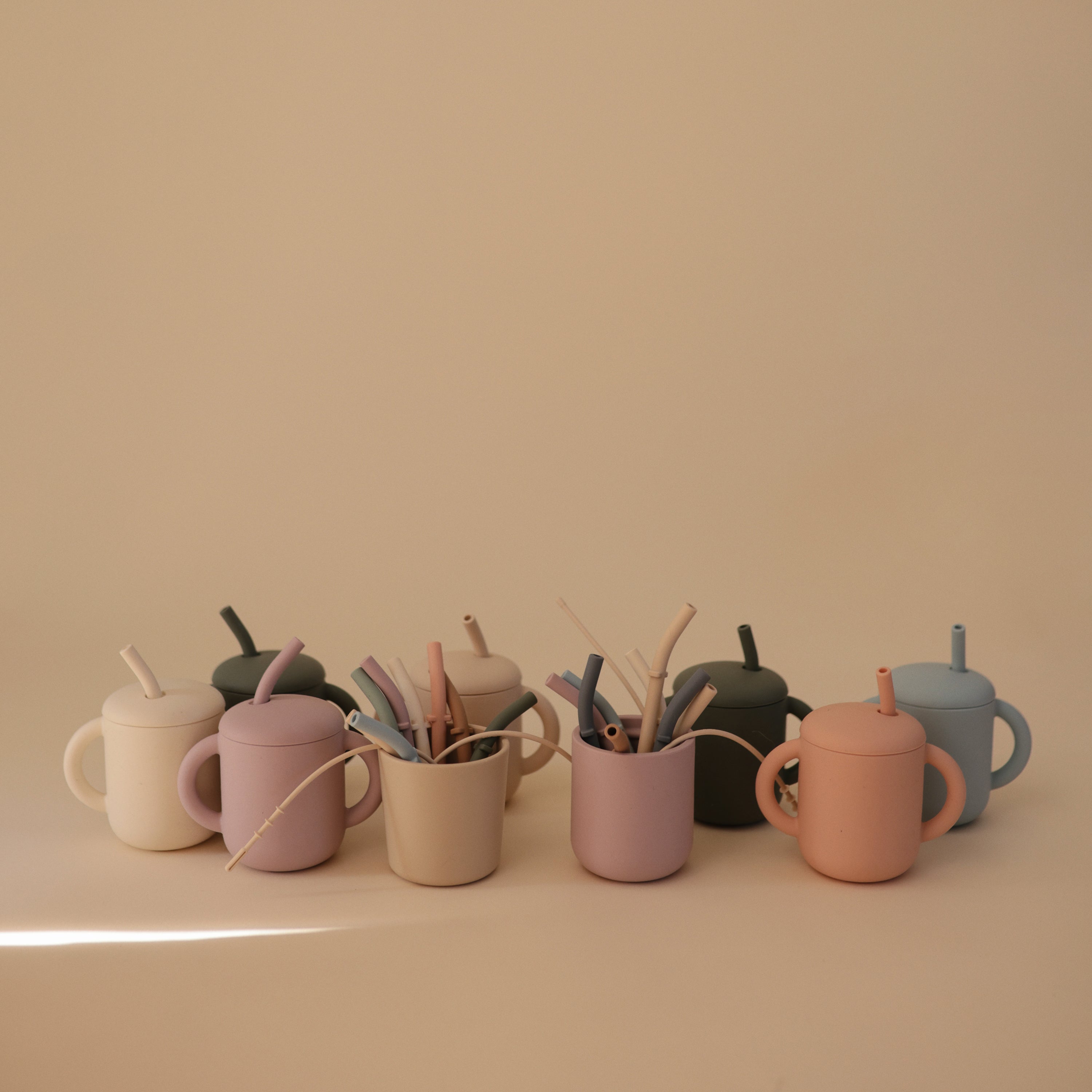 This set of 5 silicone replacement straws is designed specifically for the Mushie silicone training cup, offering a convenient, reusable and safe drinking solution for littles. Made from non-toxic, food-grade silicone, the straws are gentle on gums and emerging teeth. A silicone cleaning brush perfectly sized for the straws makes it easy to keep them hygienic and ready for use. Each set includes 5 different color straws.