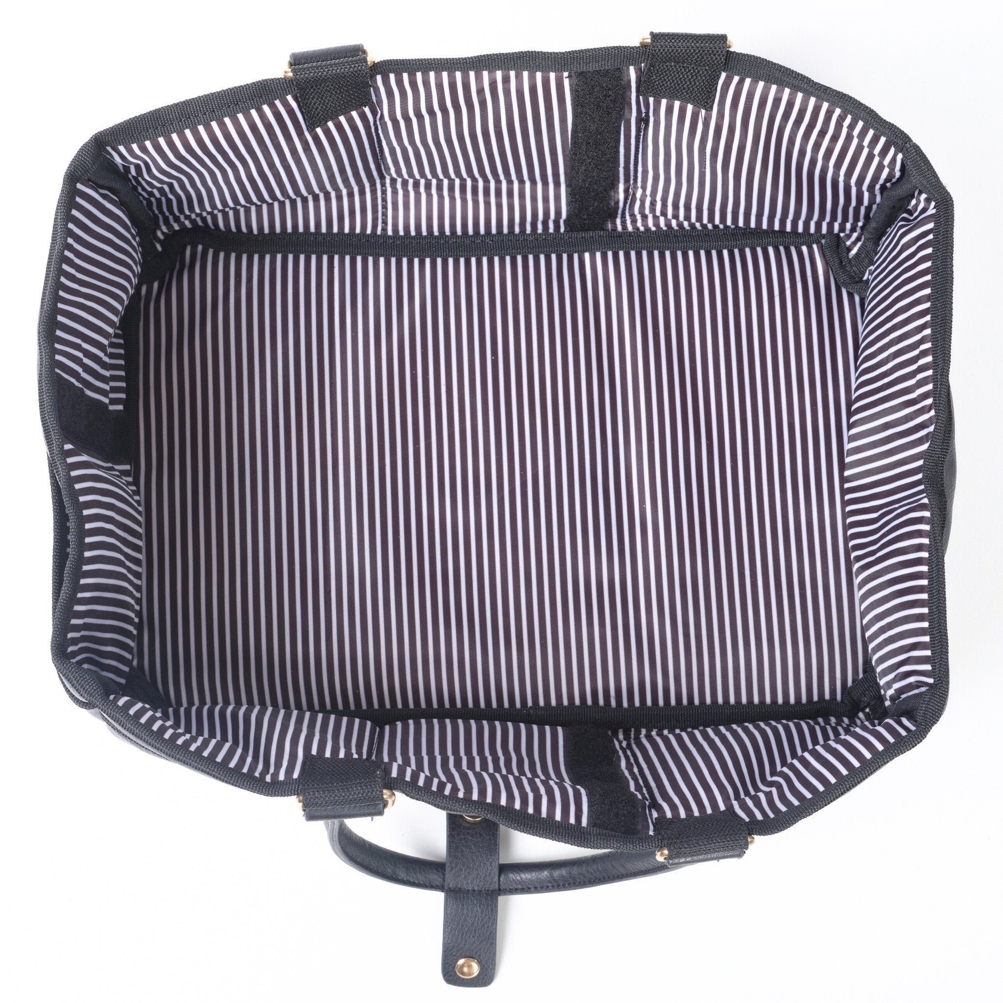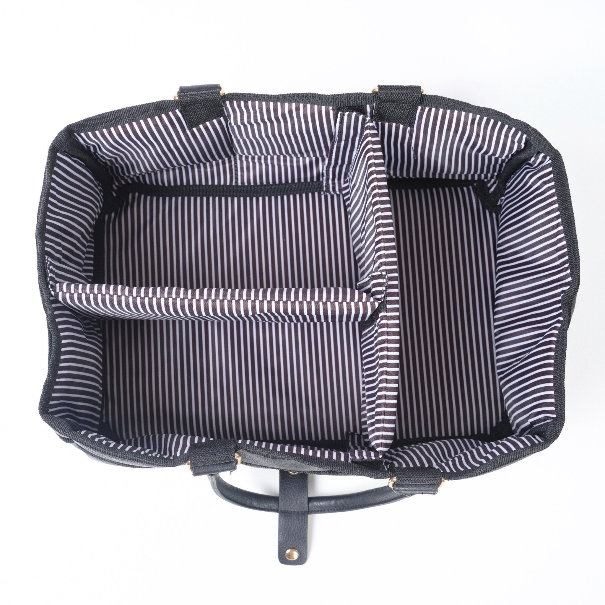 - Thoughtful Design: The rich dark Vegan Leather is stylish and would look great in any room. It looks good on your changing table, on top of a dresser or next to the diaper pail and is an essential item for your diaper changing station. Easily carry the tote with the sturdy comfortable handles.