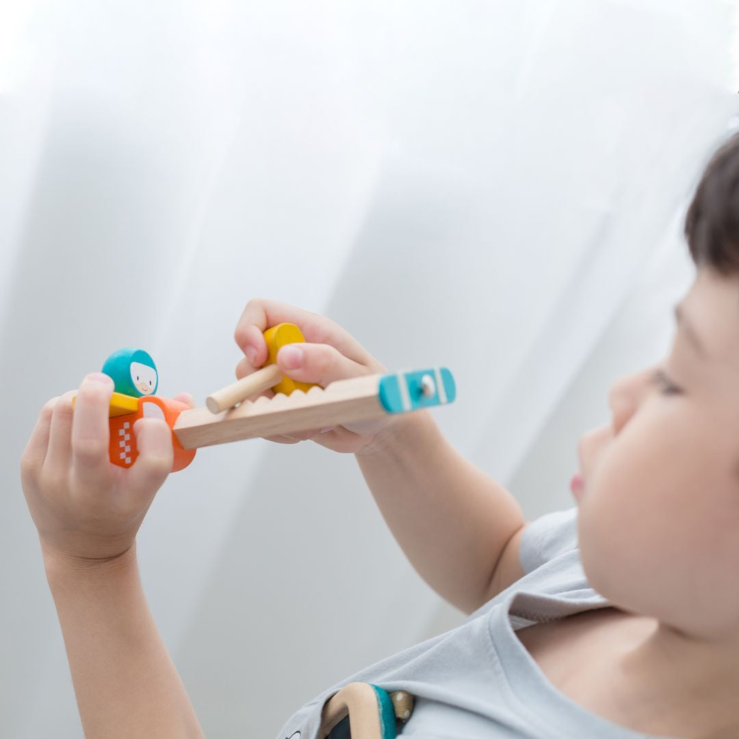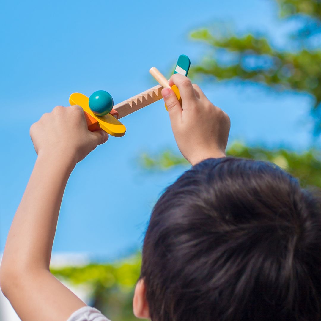 - A PlanToys take on the traditional “Hui Machine” or “Hooey Stick” game