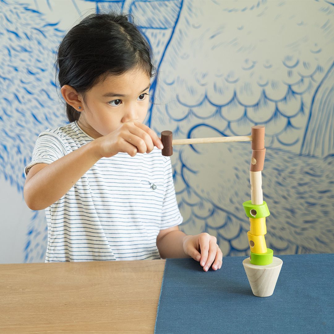 This Stacking Logs Set helps develop fine motor skills. The set consists of 10 blocks with different shapes, 2 sticks and 1 base. The player starts playing by using a hand to stack a log without making it fall. For an additional challenge, the player has to add the logs into the stick then hold the stick in one hand and stack a log on the base one by one. The player that can stack a log without making it fall is the winner. Ideal for 1-2 players.