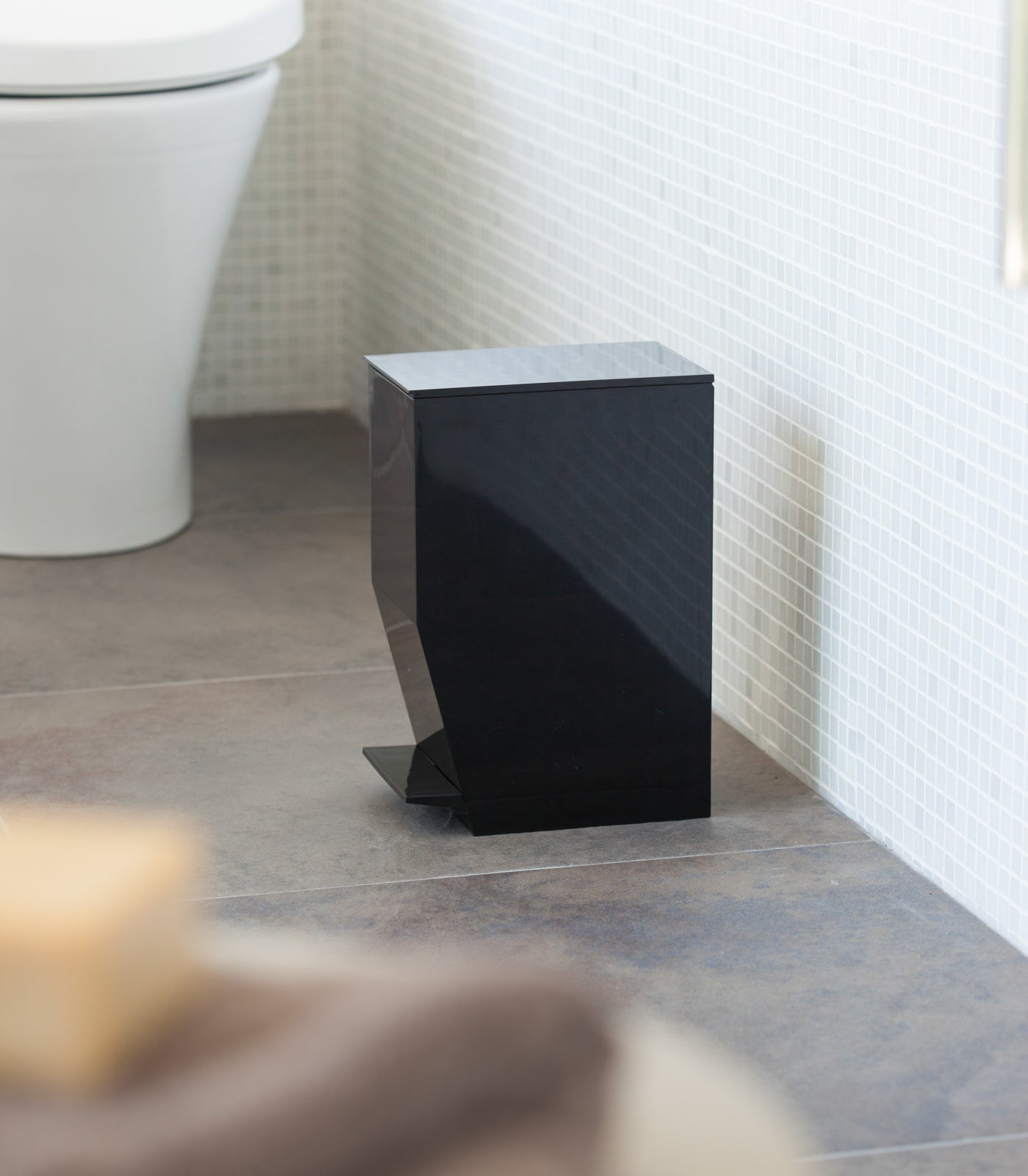 Step on it! If your bathroom is tight on space, this might just be perfect. It offers a minimalist footprint, and a handle for easy emptying. Most importantly, the step-open design will save you from bending over to open the lid, while also providing discretion to your bathroom waste.