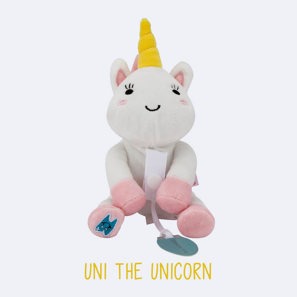 Lightweight and ultra-cuddly, The Teething Pals are designed to be your baby's plush friend as well as a practical teething and skill development toy:
