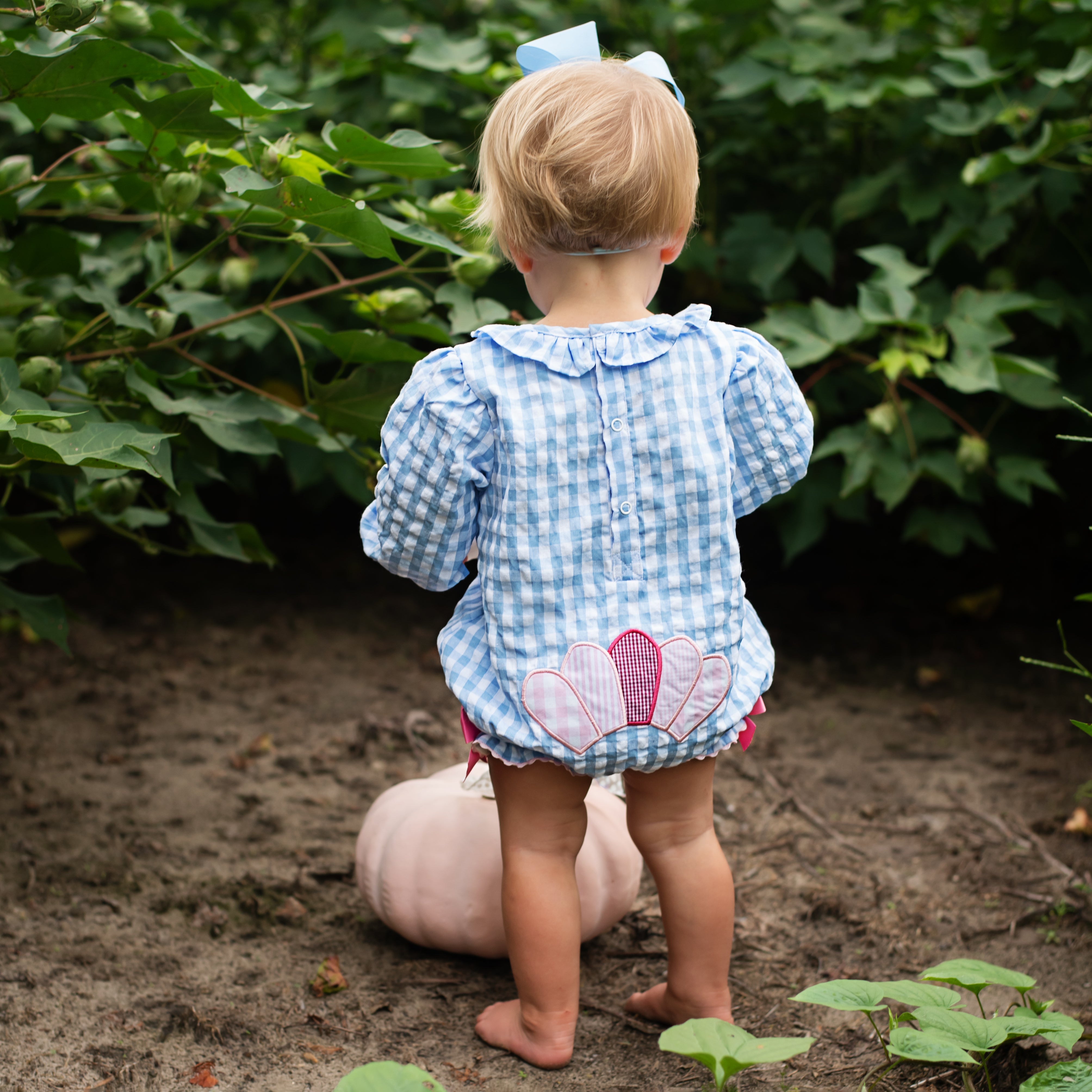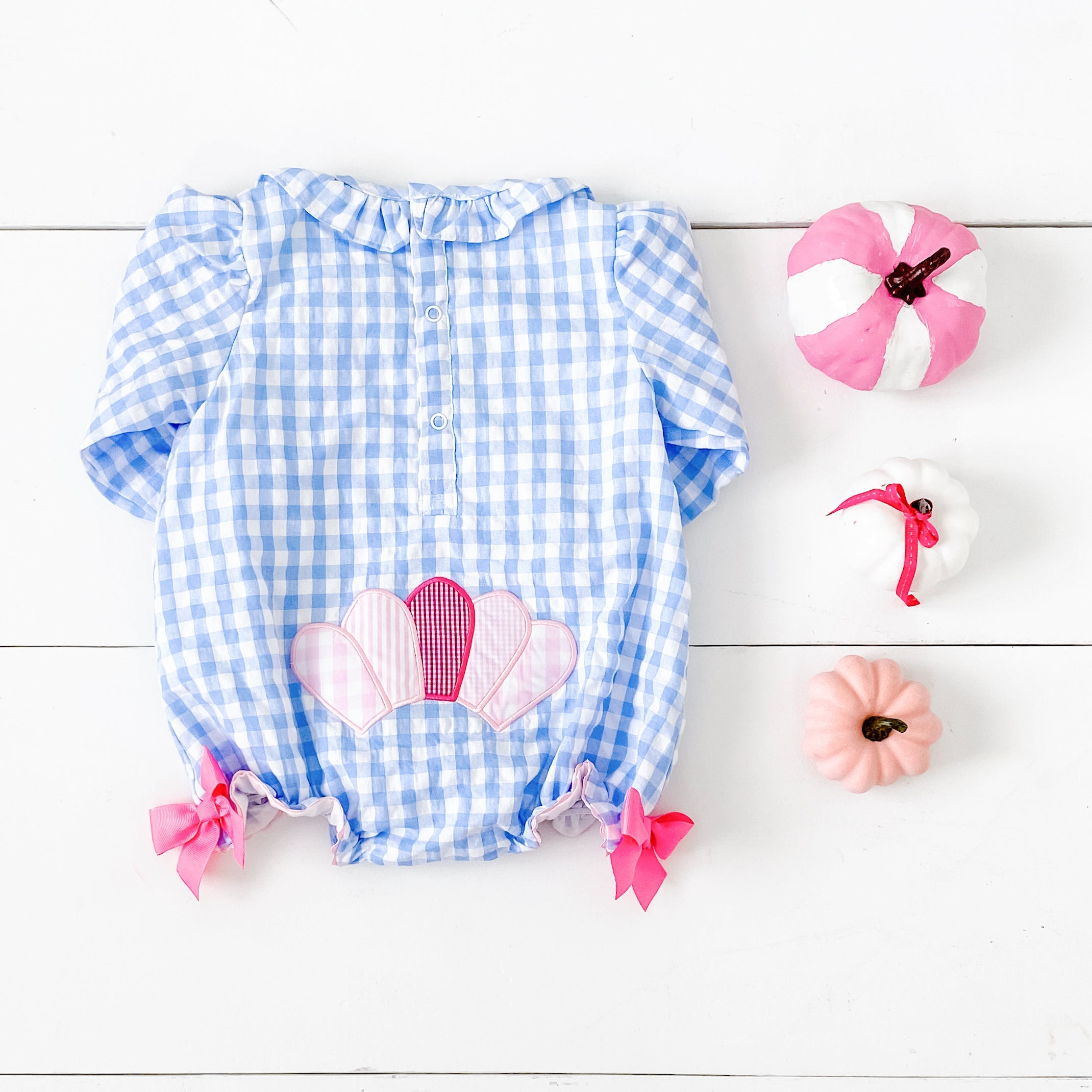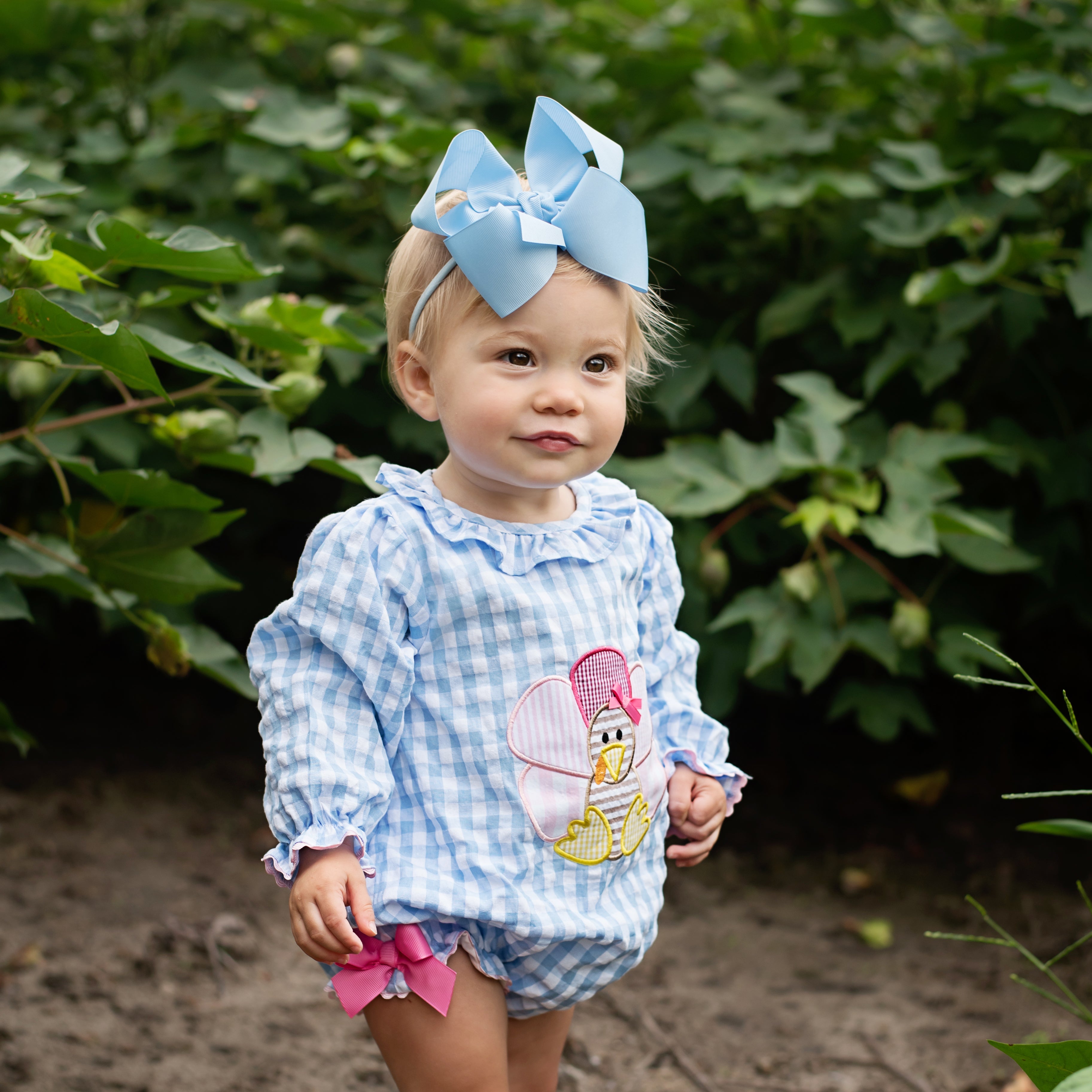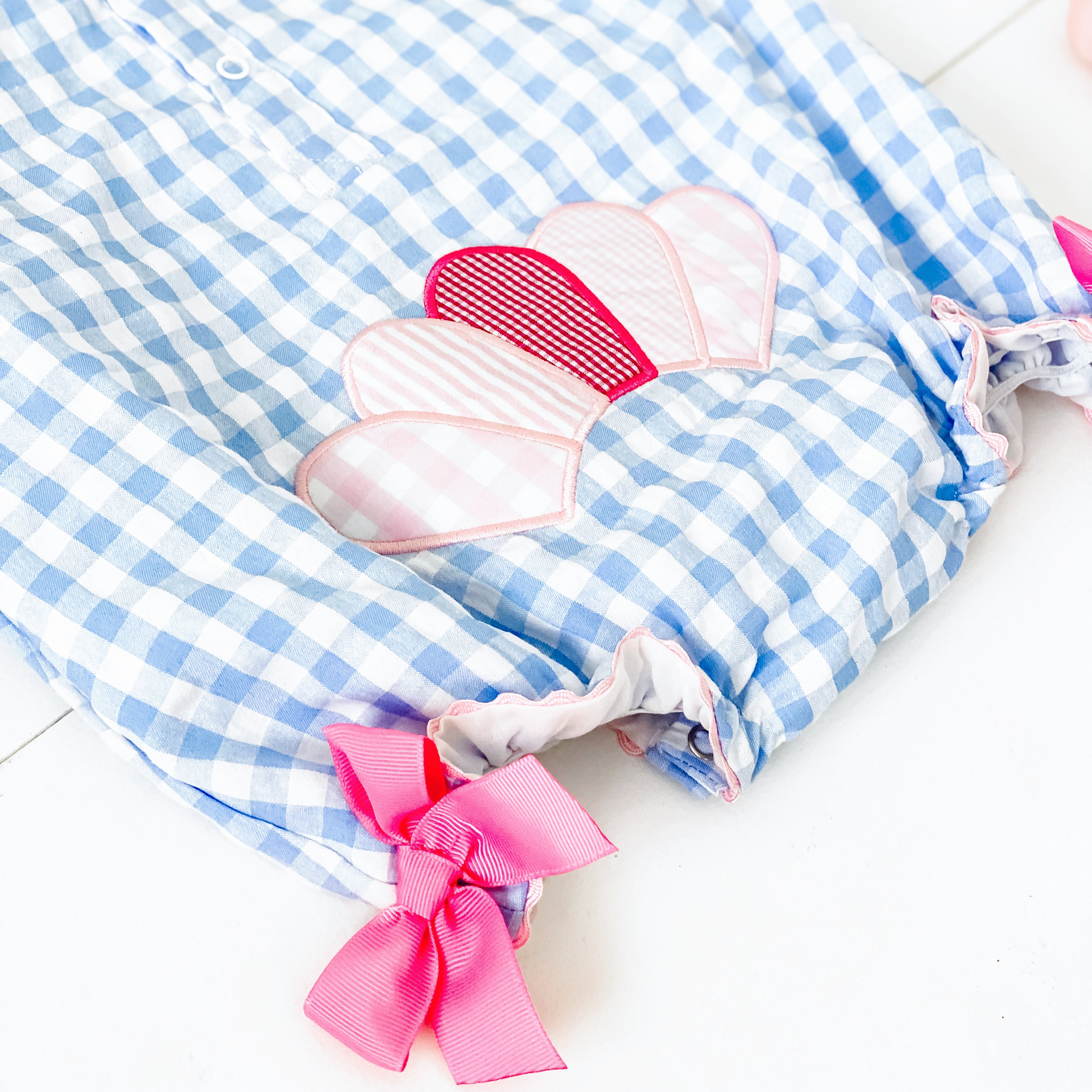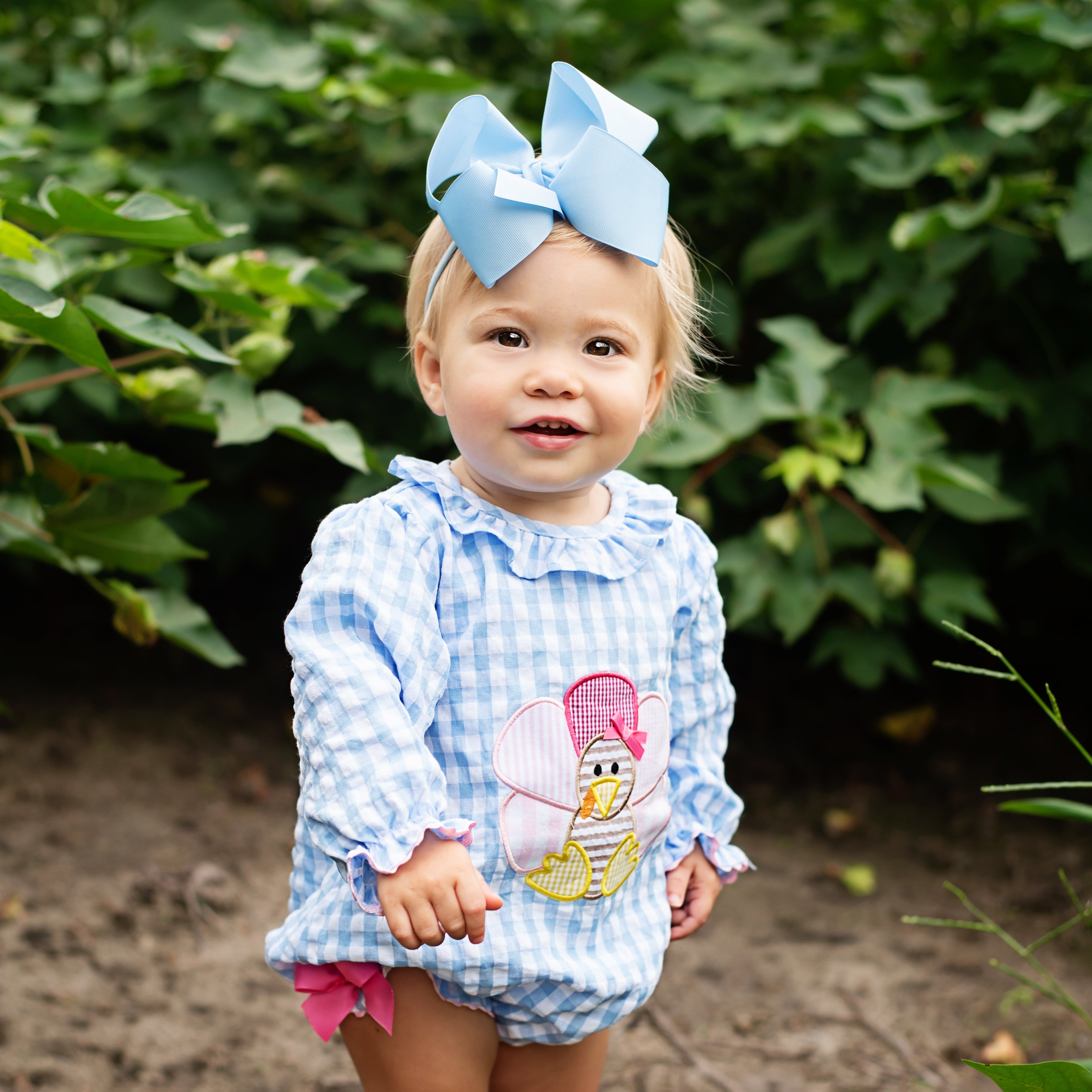 The cutest Thanksgiving Bubble features a Thanksgiving turkey applique on the front with applique turkey tail feathers on bum. Accents of ric rac, ruffles, and bows make this bubble over the top cute!