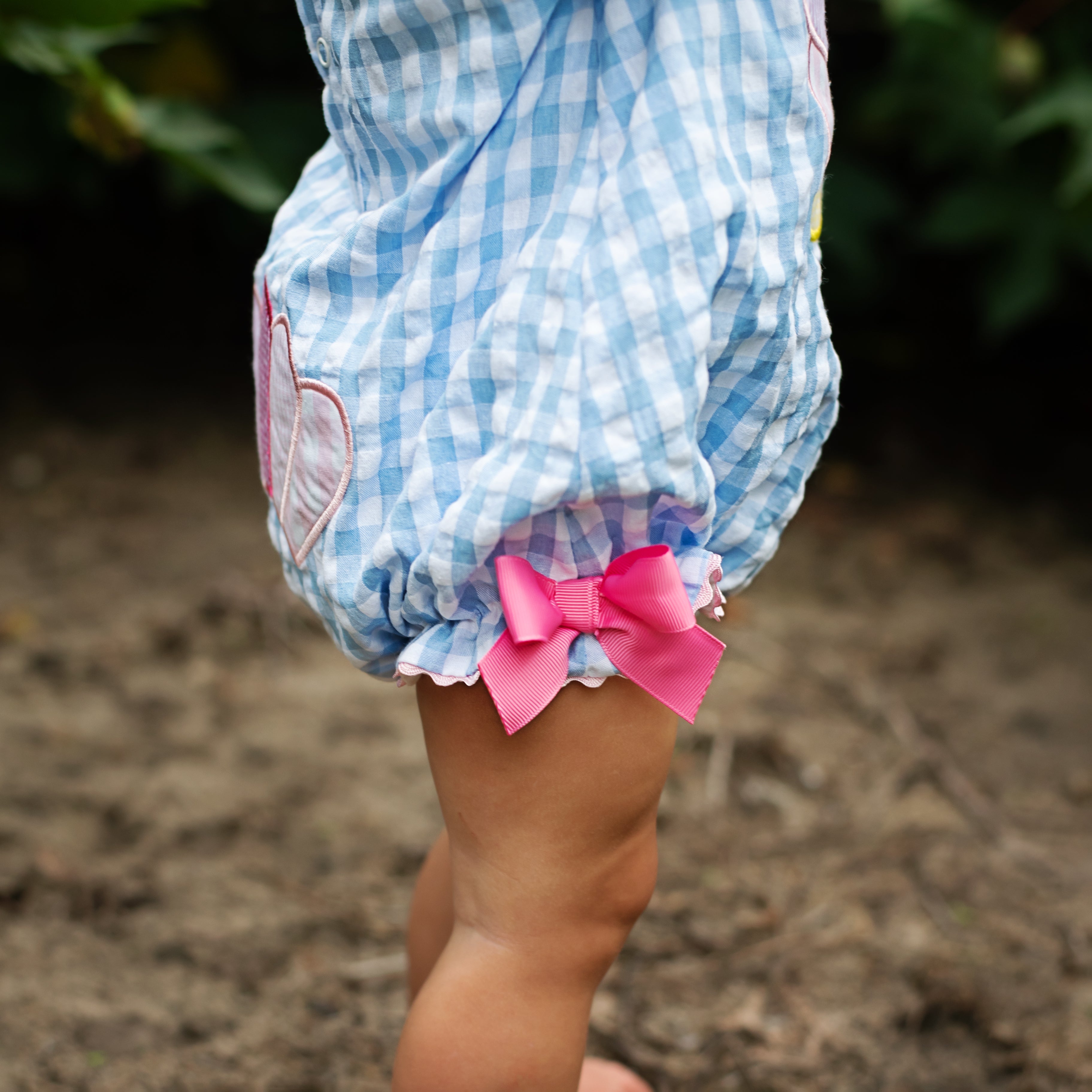 - ruffle at sleeve and leg trimmed with ric rac