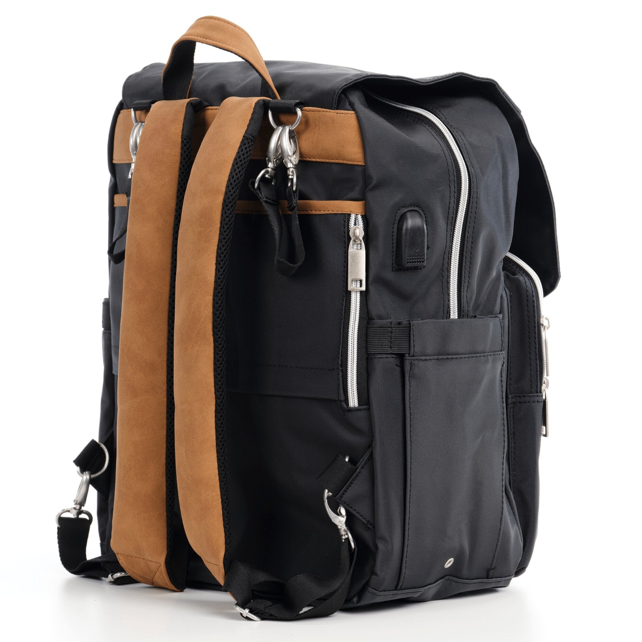 Designed for parents juggling multiple kids or work essentials, the Kaitlyn backpack diaper bag has all the space you need. Crafted from premium canvas, it holds everything from diapers to a laptop up to 15 inches, even a breast pump. Its USB charging hub and stain-resistant coating keep you organized and ready for whatever the day brings.