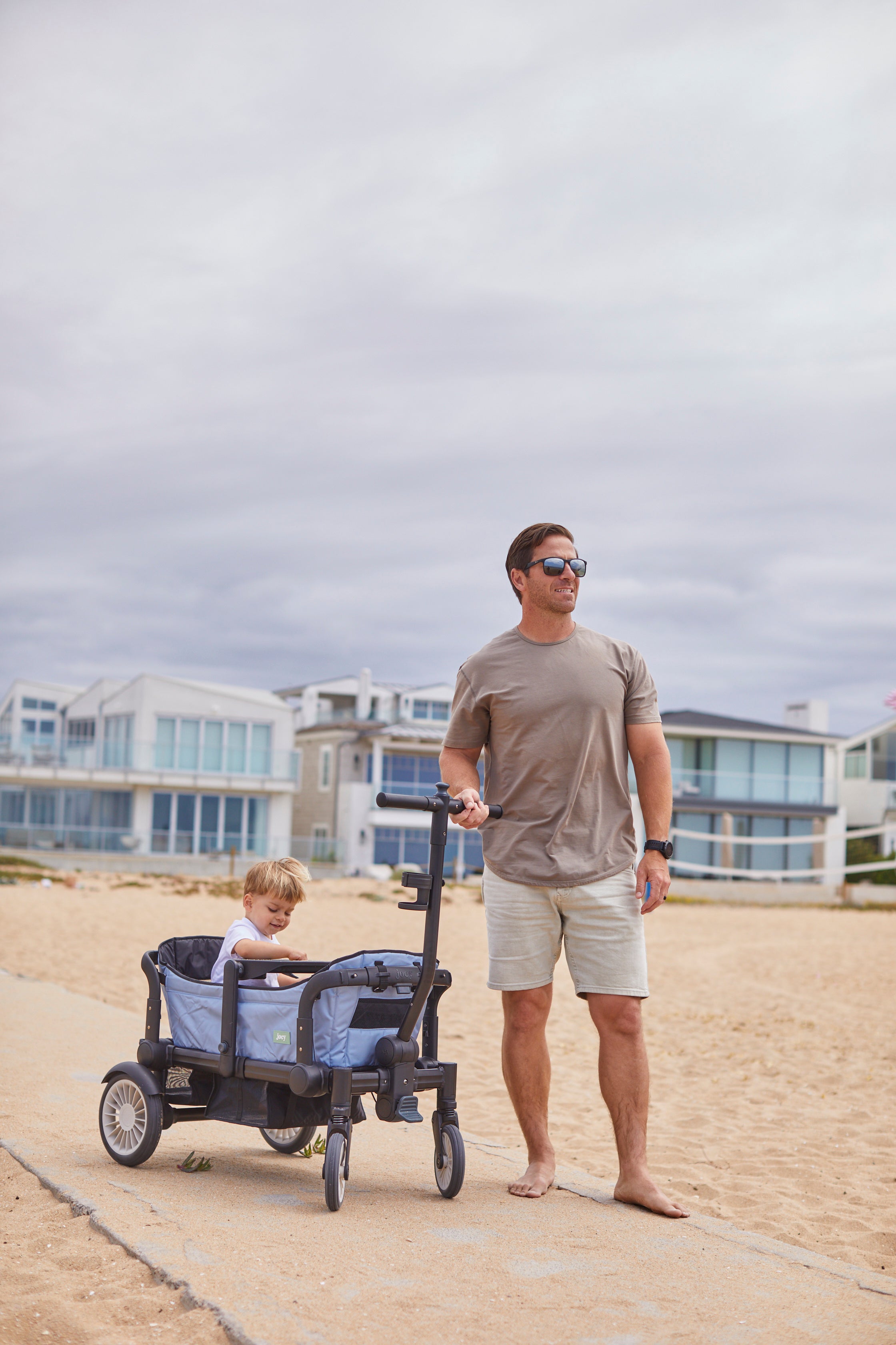 Part stroller, part wagon, and all you need for your adventures with your little ones. Designed with the modern parent in mind, we've created a stroller wagon that seamlessly blends nostalgia with the demands of today's families. Say goodbye to compromises and hello to a smoother and safer journey wherever you go. Smooth rides, endless storage, and endless fun. Your all-in-one solution for on-the-go parenting.