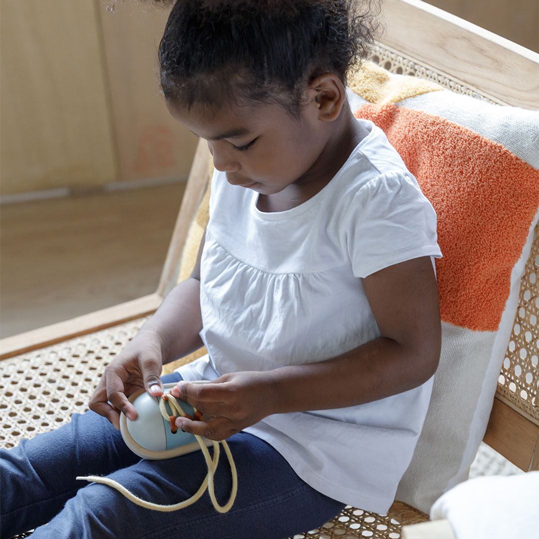 Learn how to tie your shoes! The laces on this wooden shoe can help little ones develop their hand-eye coordination and fine motor skills so they can tie their shoes on their own one day.