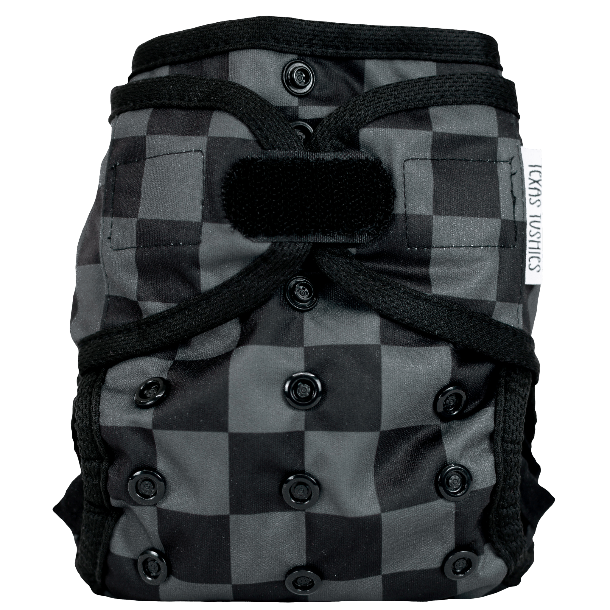 Our newborn cover features a 3 by 4 rise setting, allowing this diaper to fit 5 to 20+ lbs.