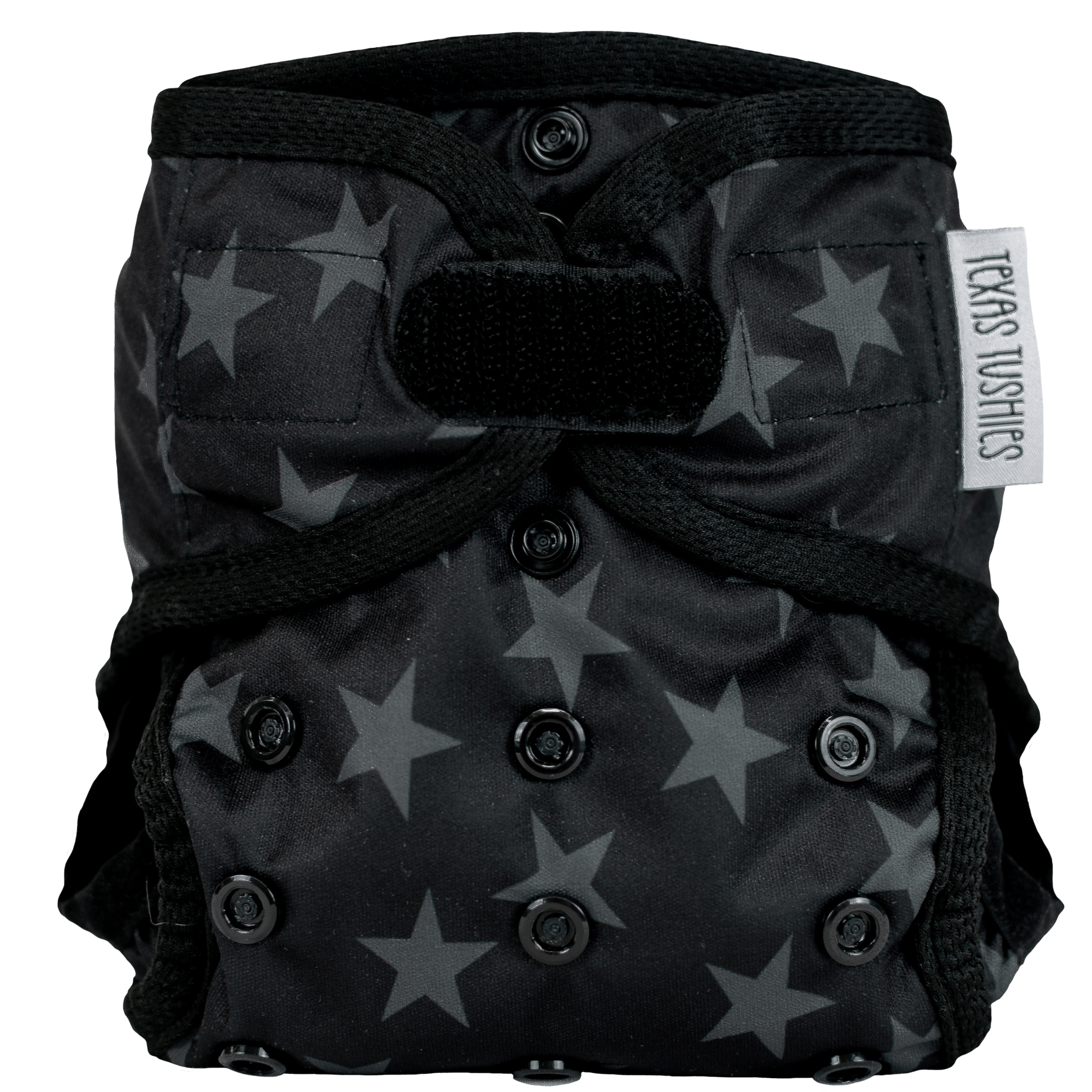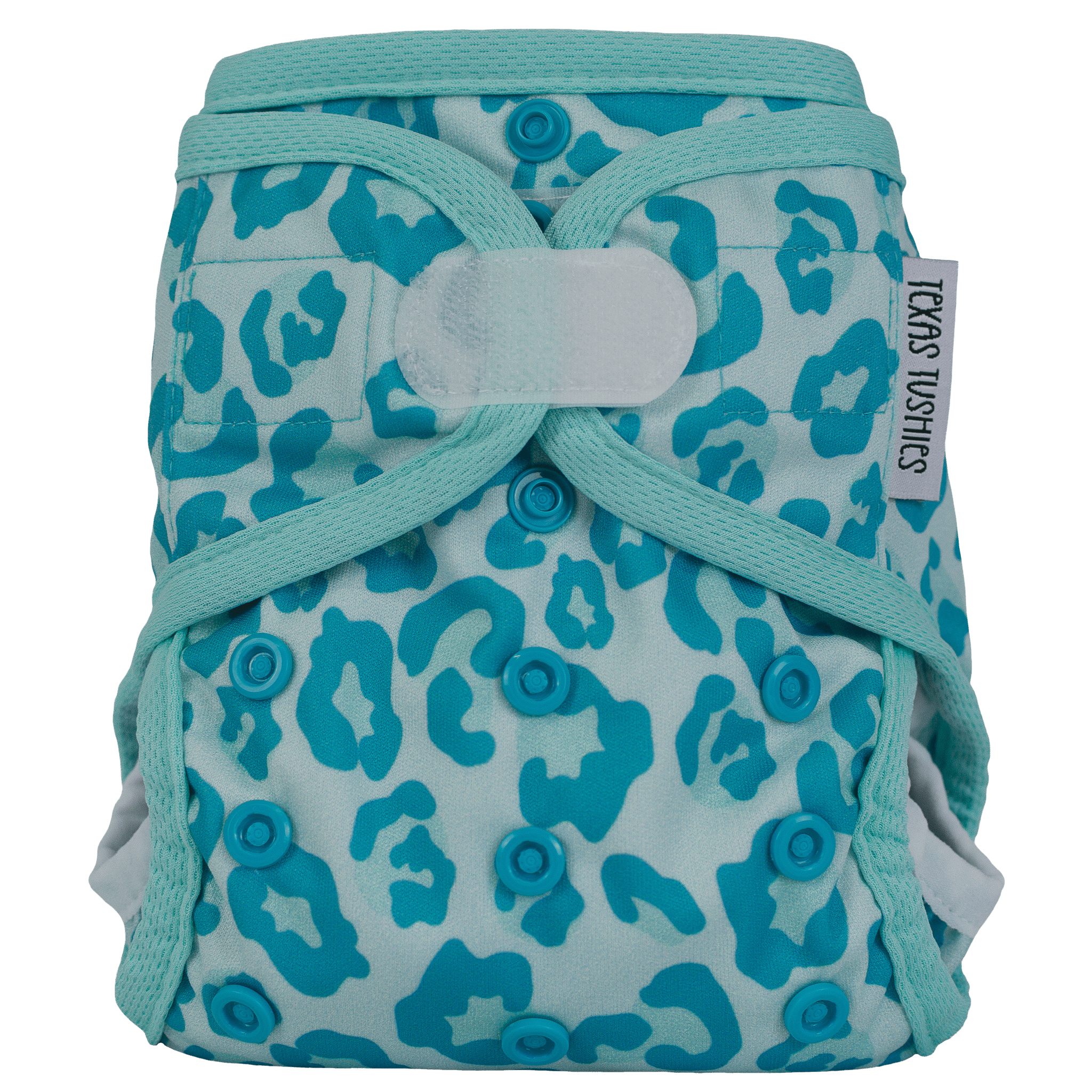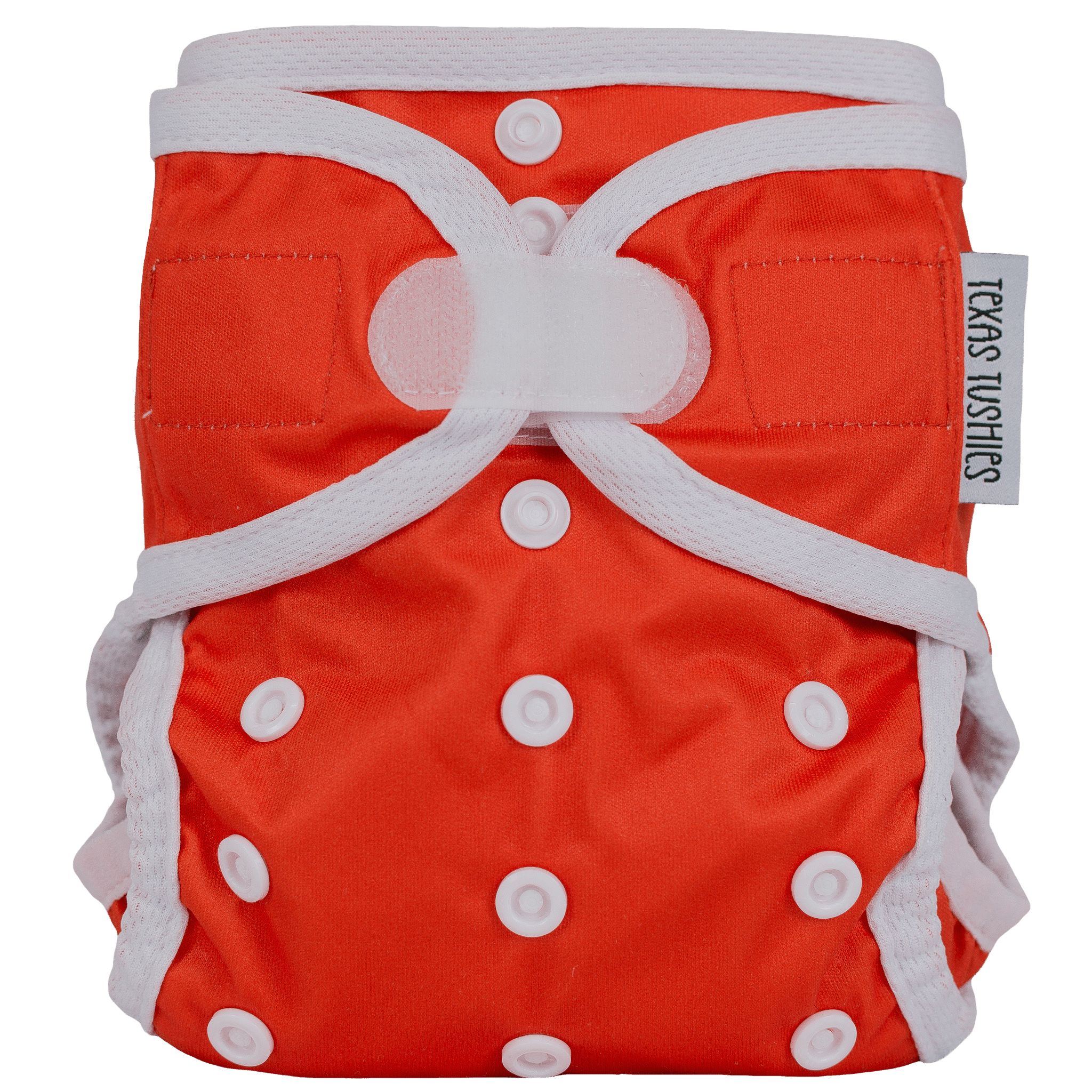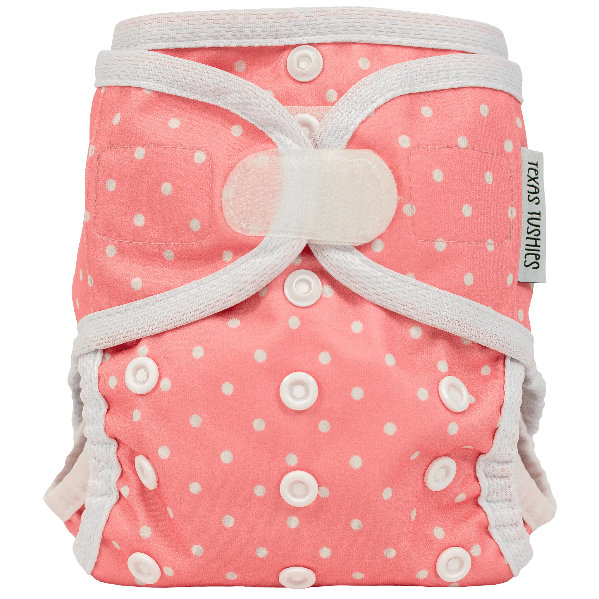 This is a Tiny Tushies Newborn Cover. This is a cloth diaper fitting babies approximately 5lbs to 20lbs, providing the most trim fit for up to one year of age.