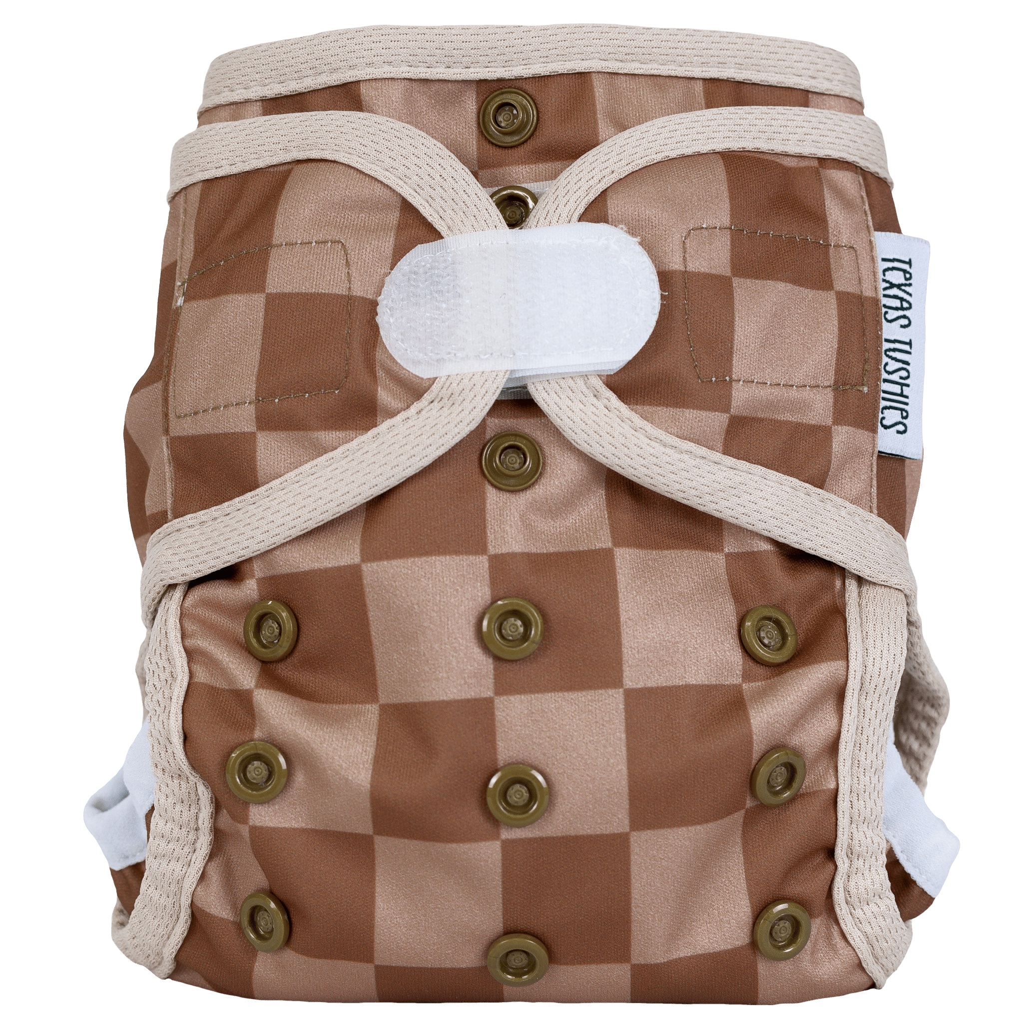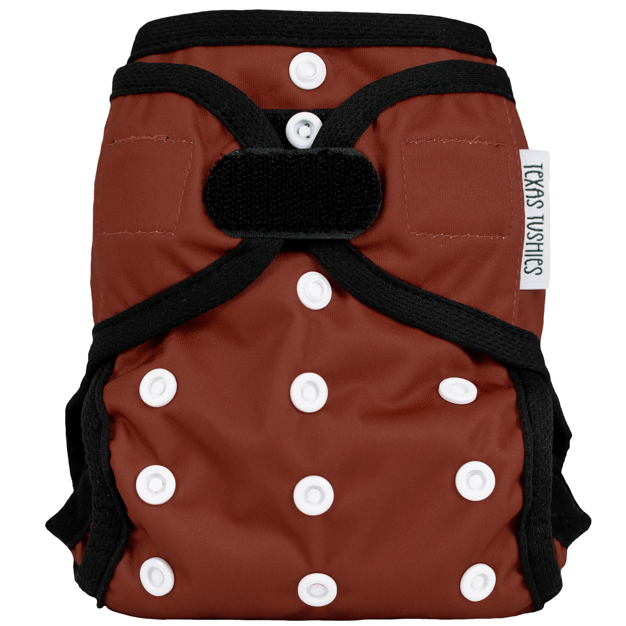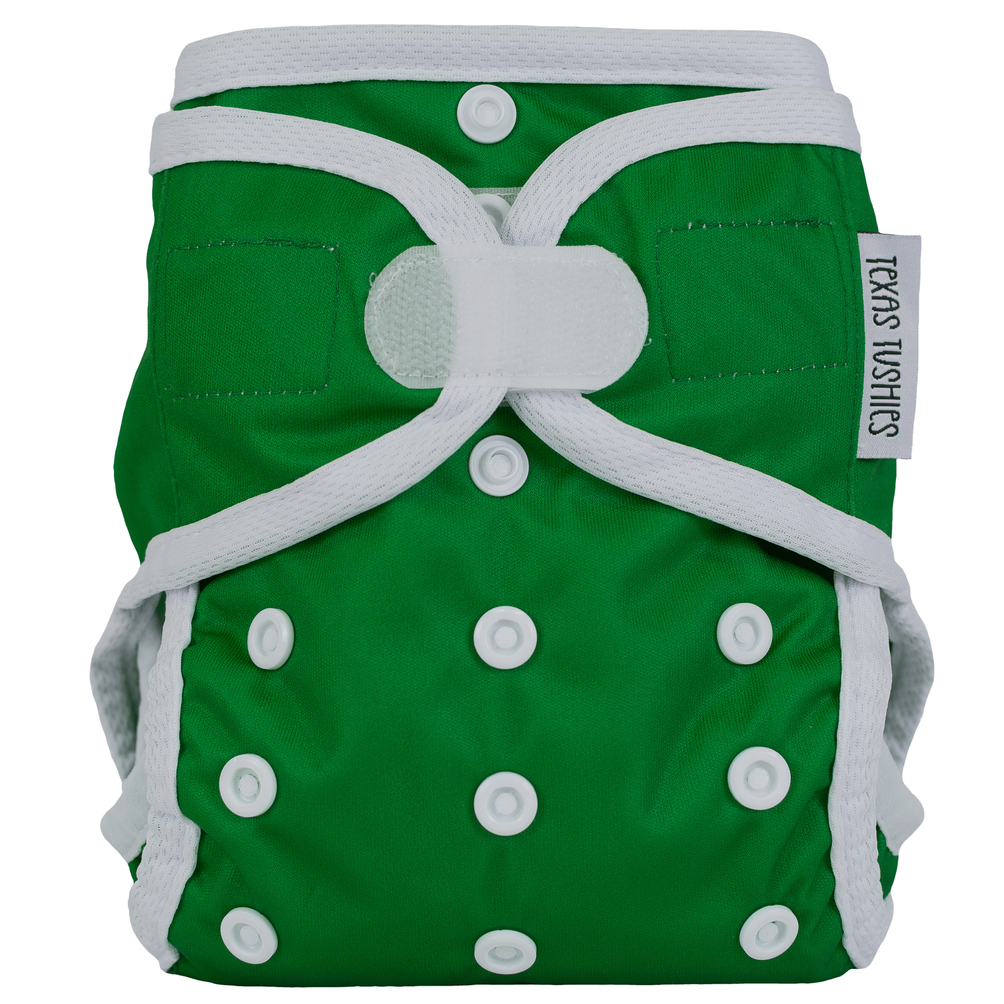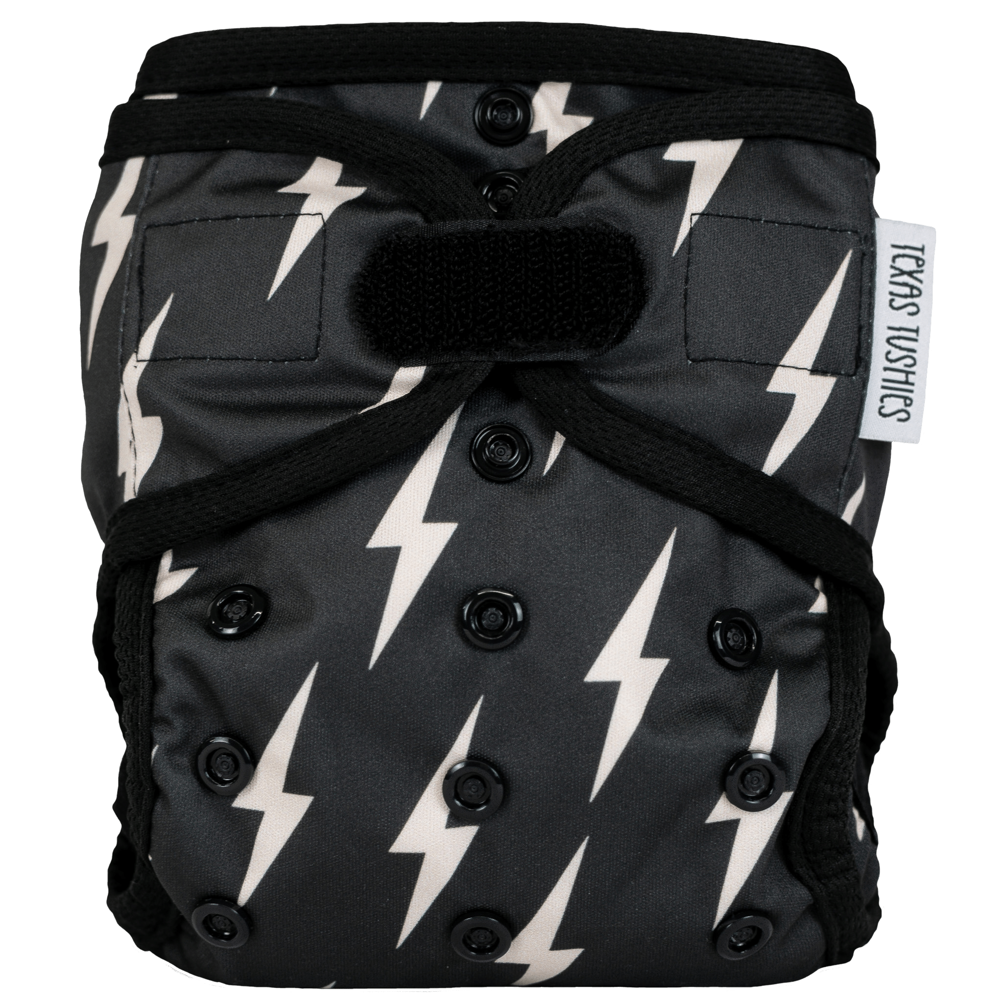 This is a Tiny Tushies Newborn Cover. This is a cloth diaper fitting babies approximately 5lbs to 20lbs, providing the most trim fit for up to one year of age.